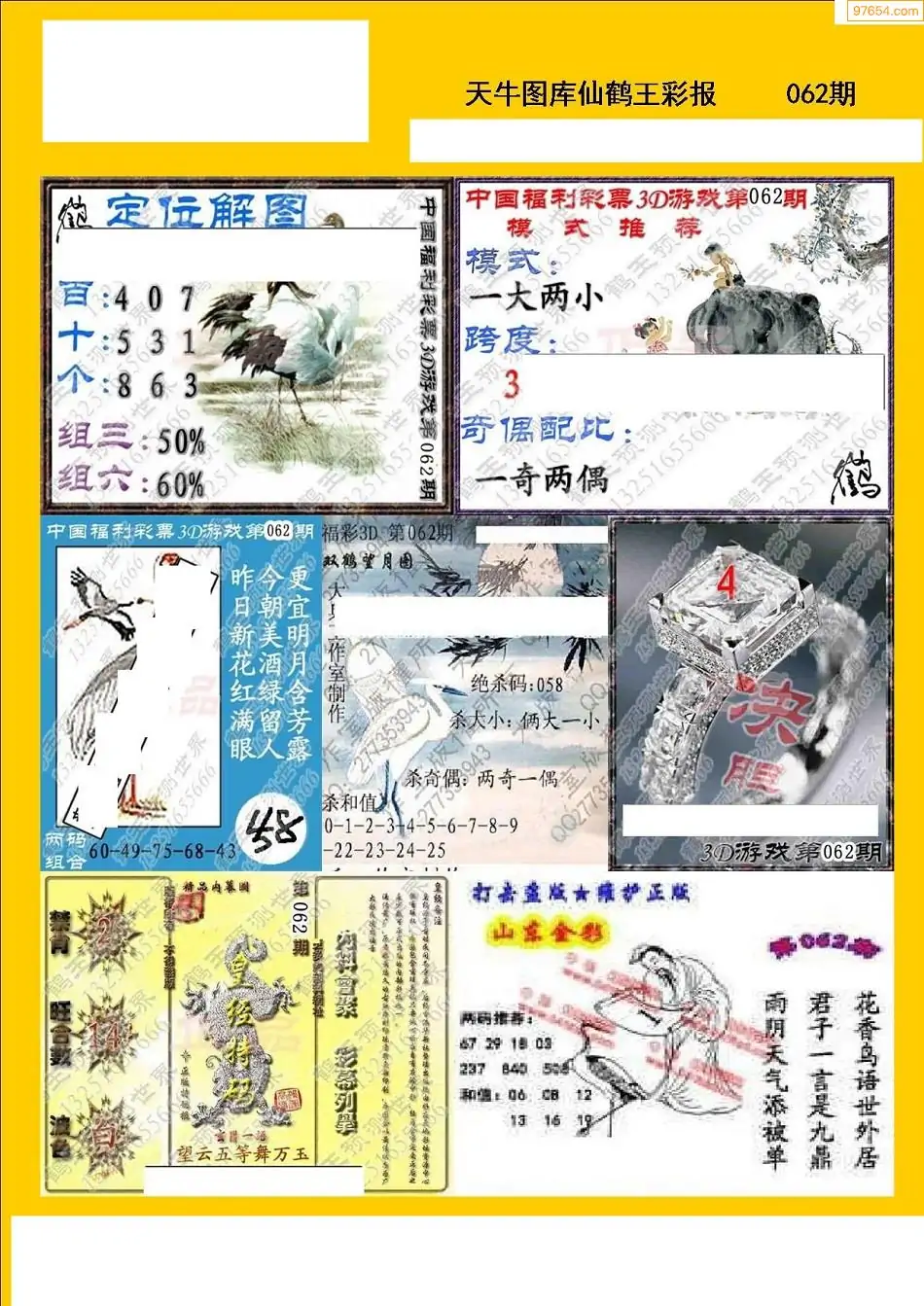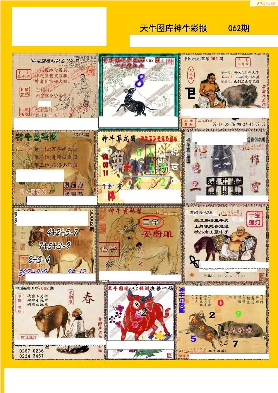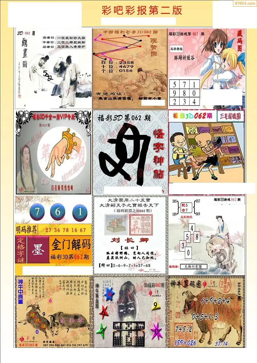福彩3D062期天牛彩吧套图整合总汇