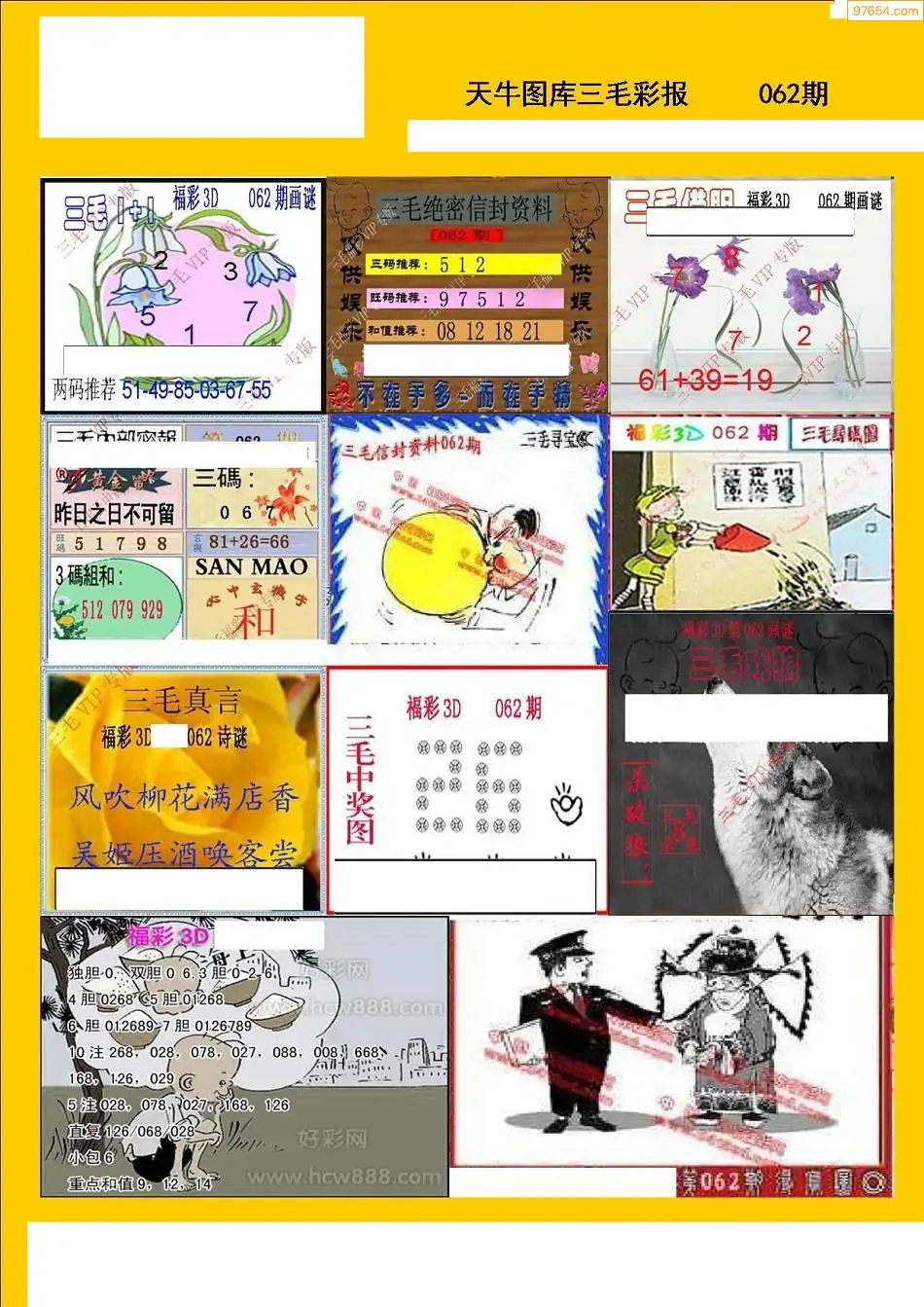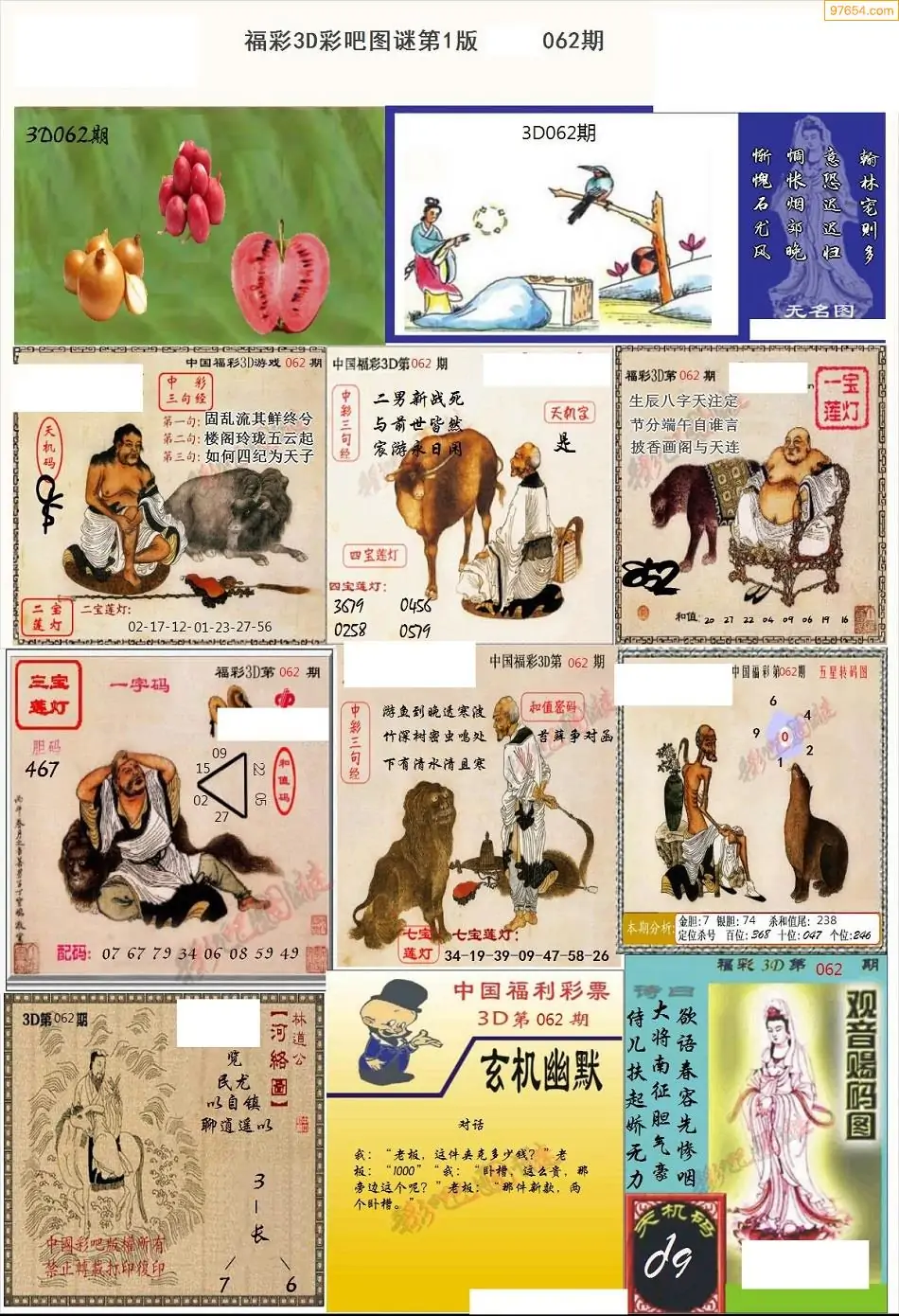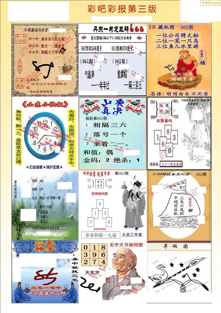 福彩3D062期天牛彩吧套图整合总汇