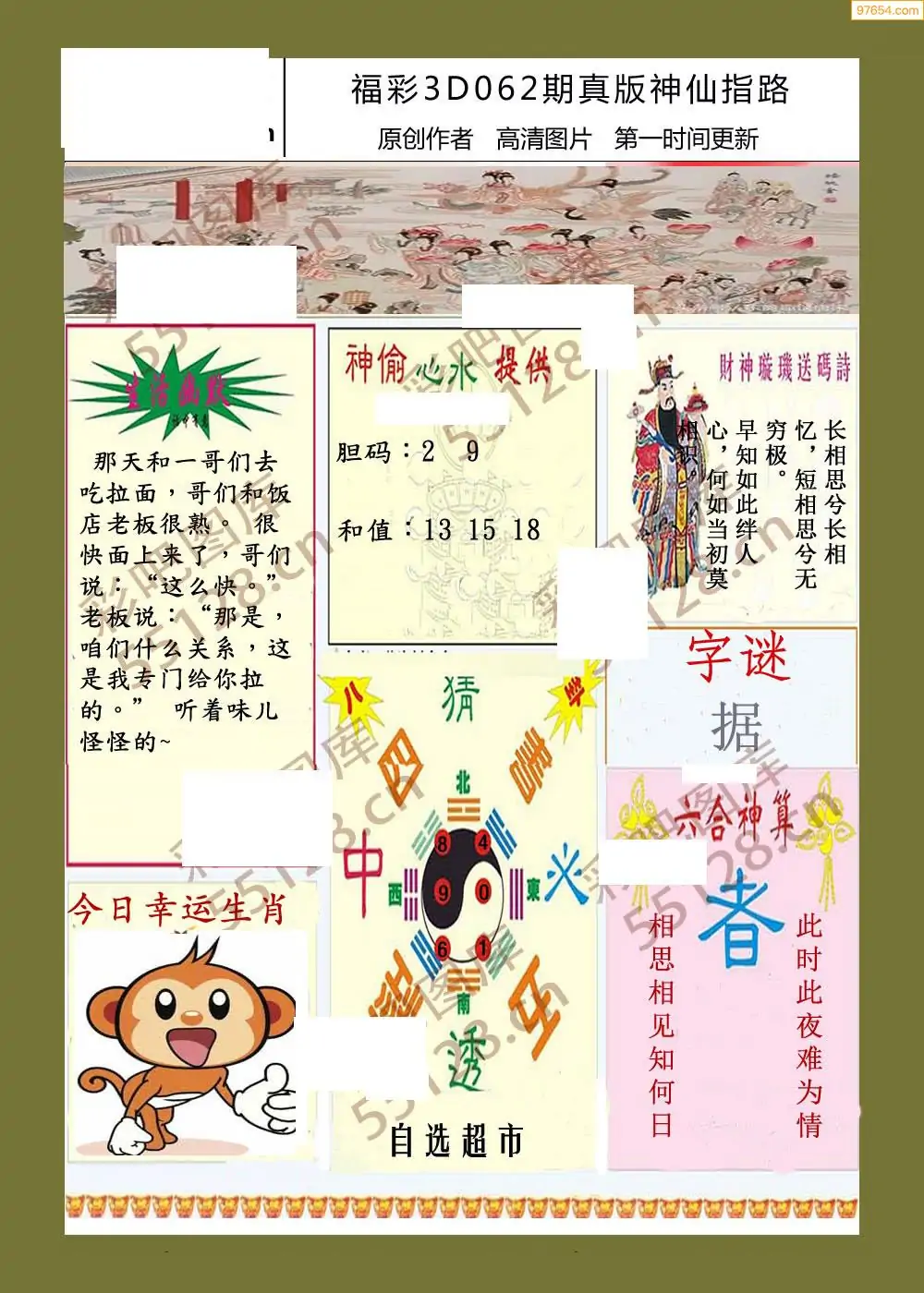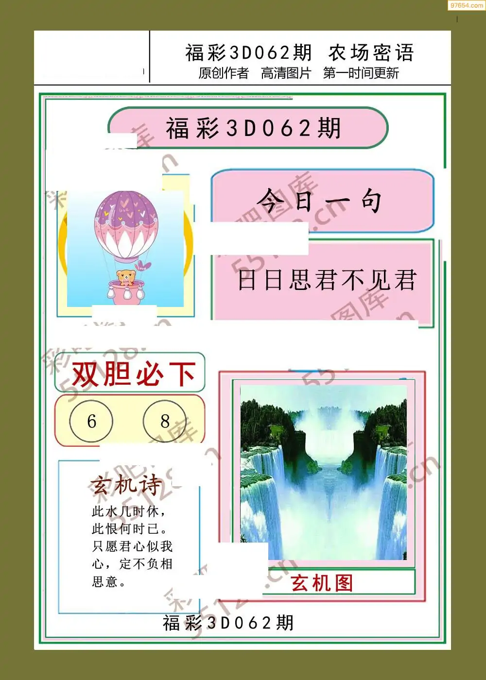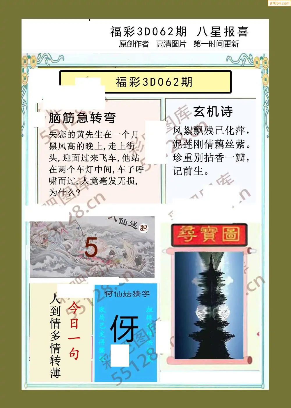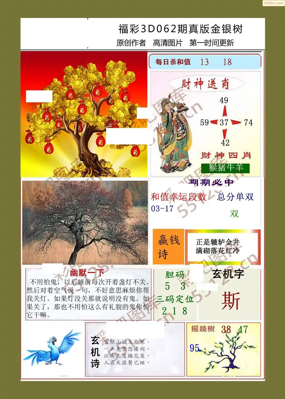 福彩3D062期天牛彩吧套图整合总汇