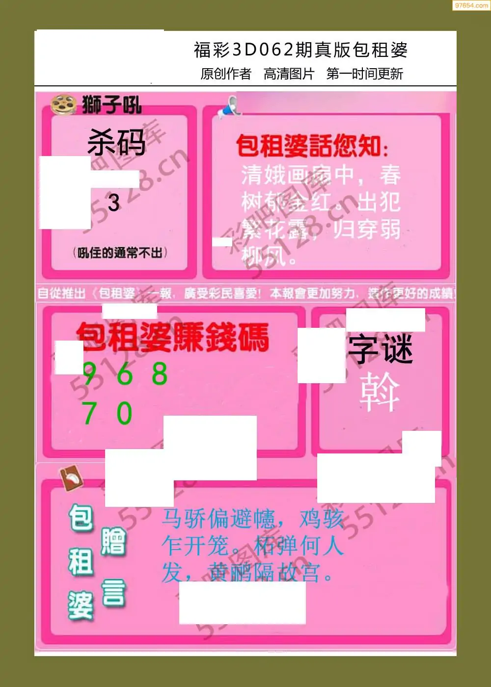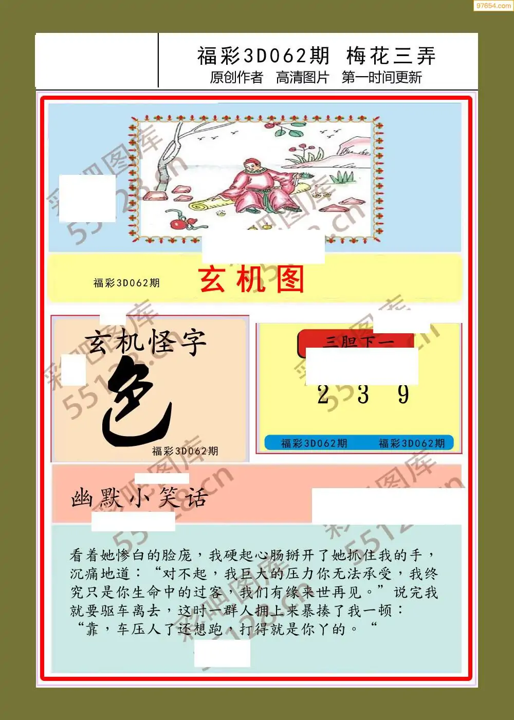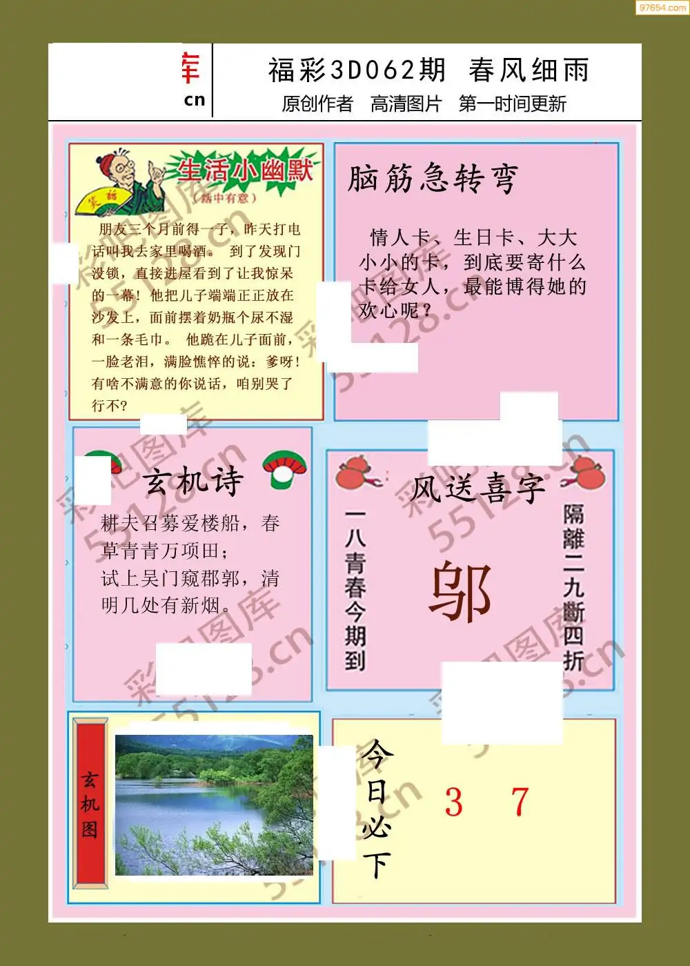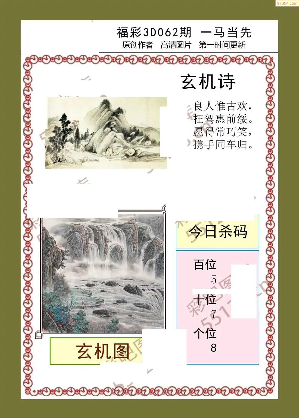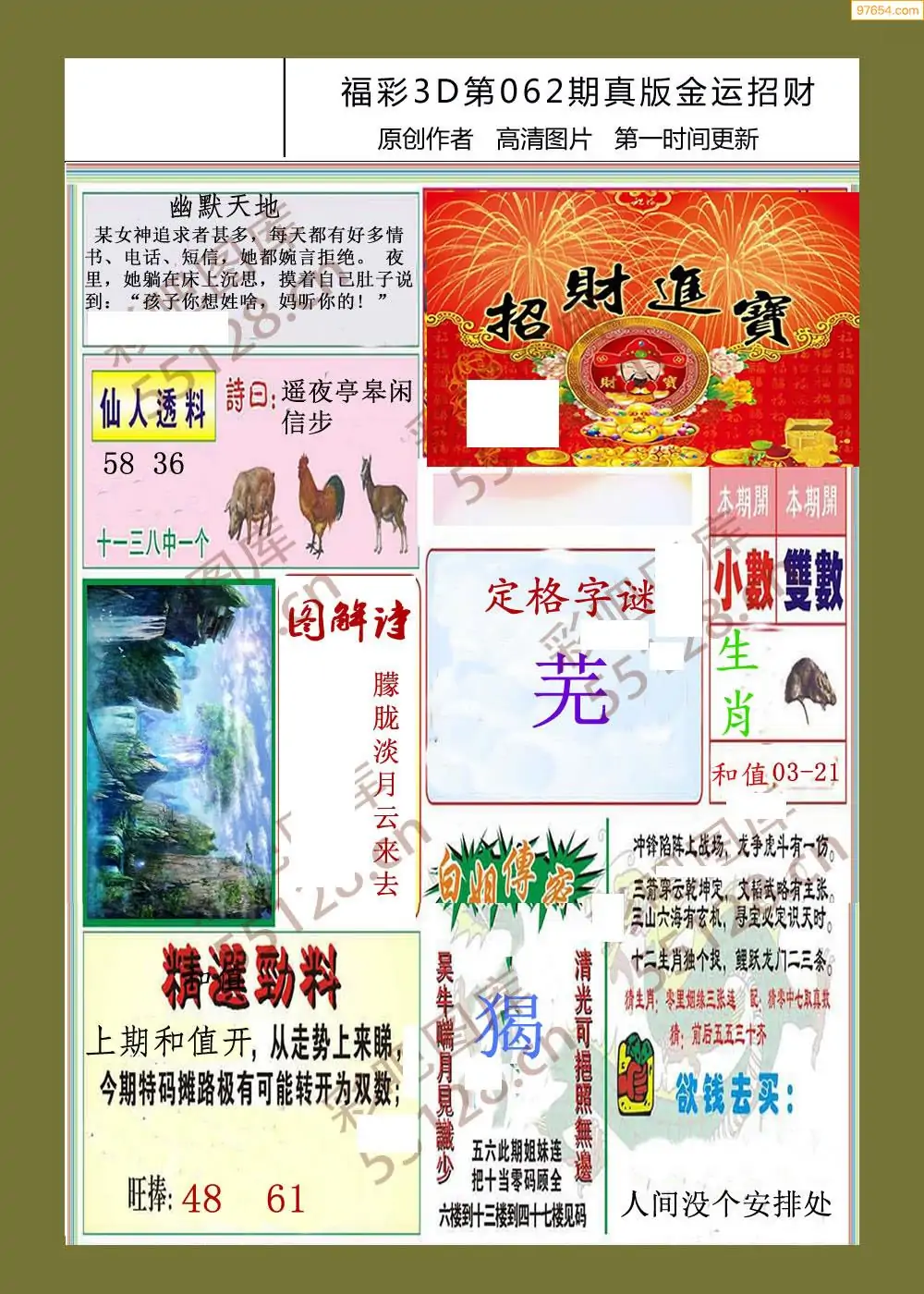 福彩3D062期天牛彩吧套图整合总汇