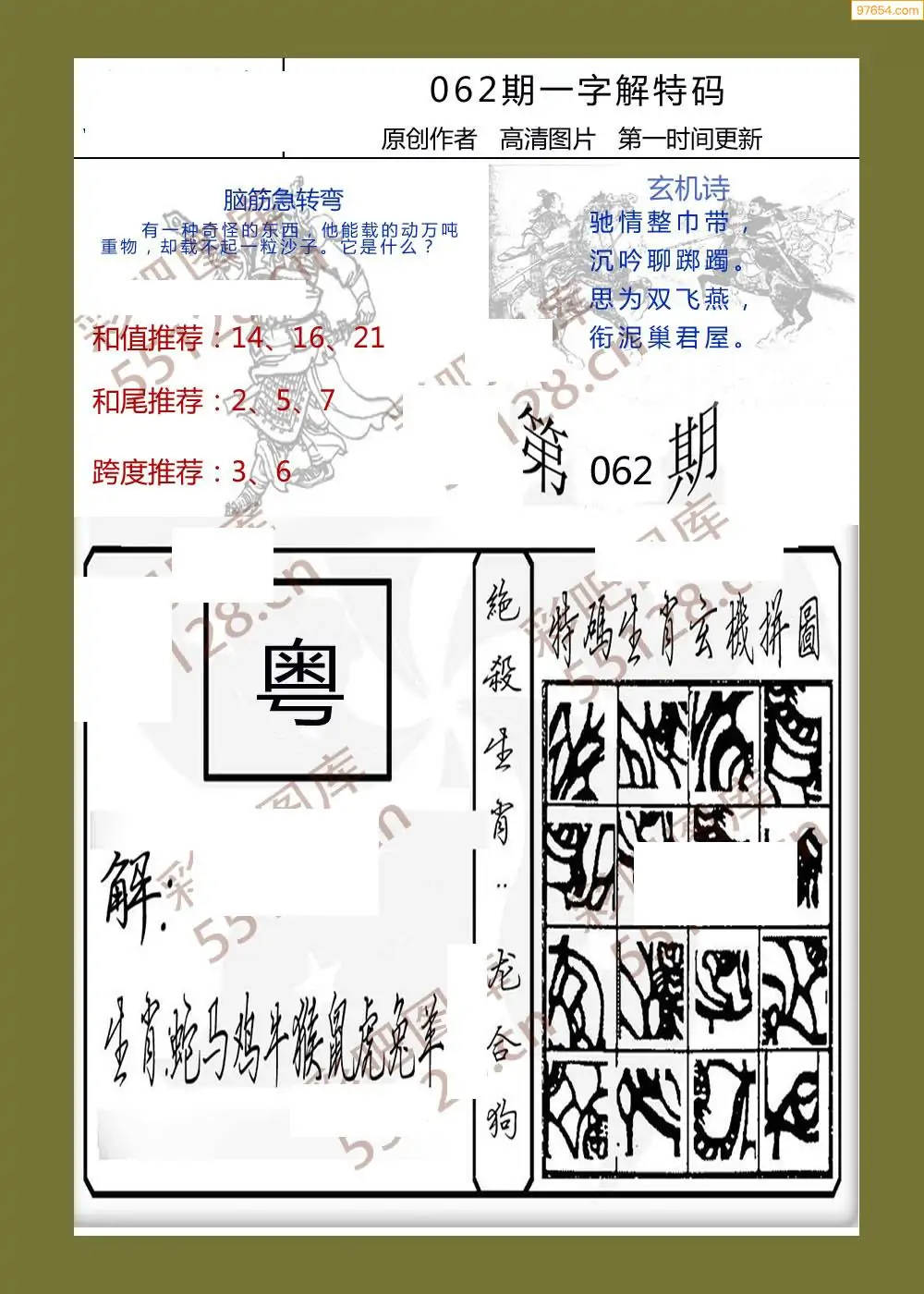062期福彩天机壁怪字图
