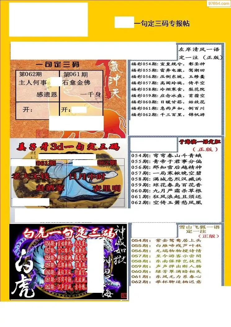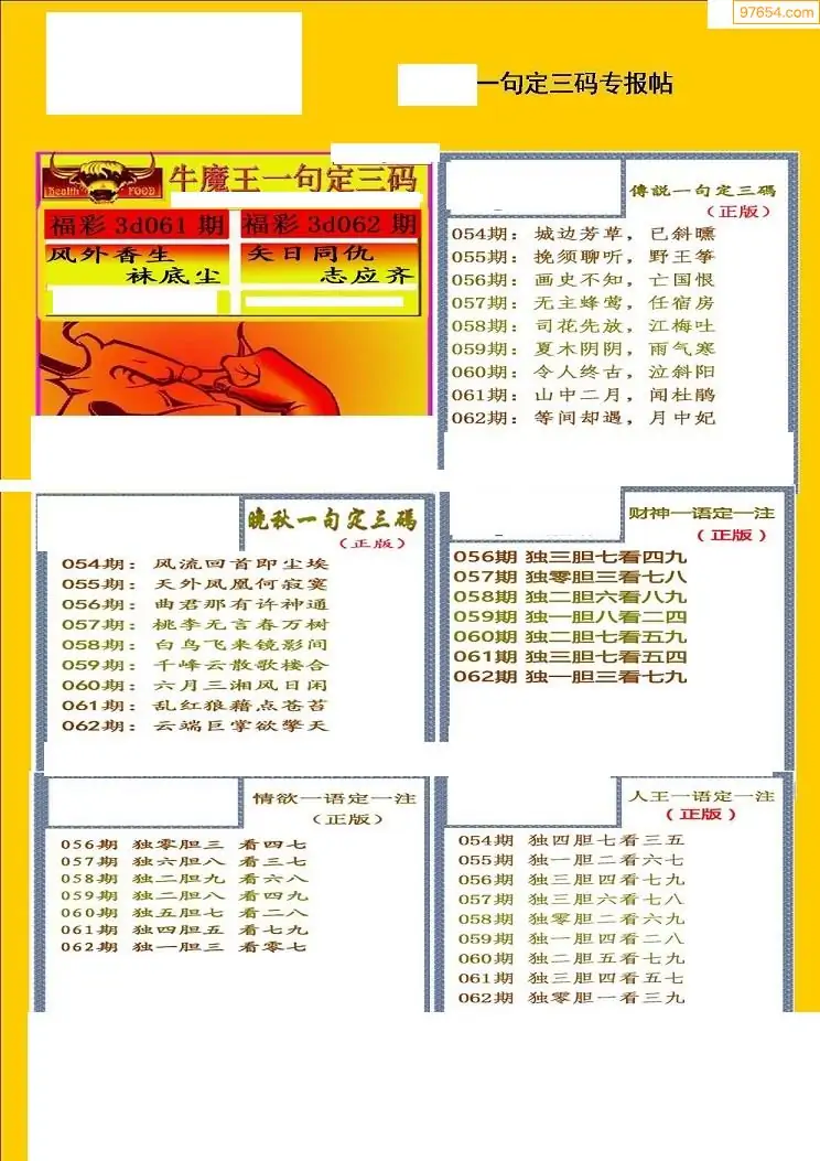 福彩3D062期天牛彩吧套图整合总汇