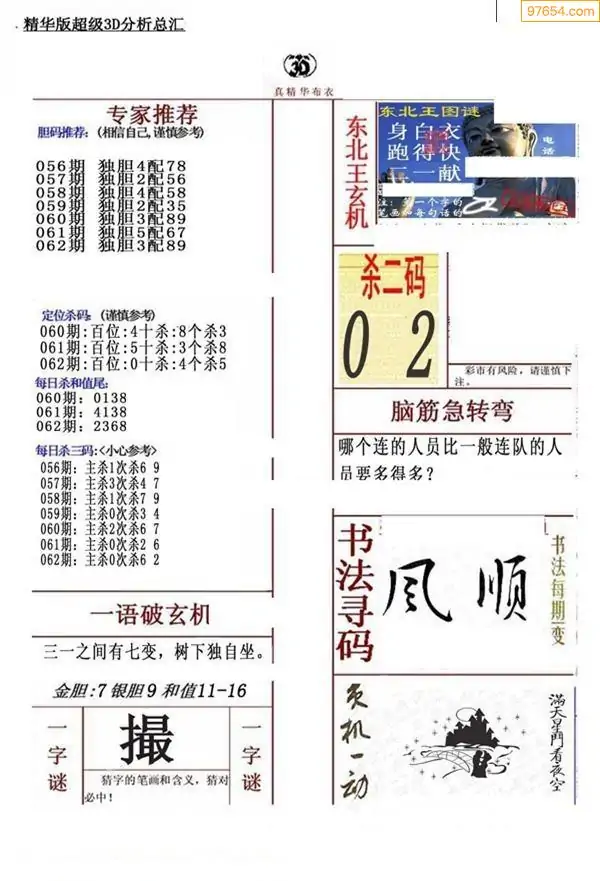 (3)2026062期3D预测总汇全图_福彩3d图谜字谜总汇