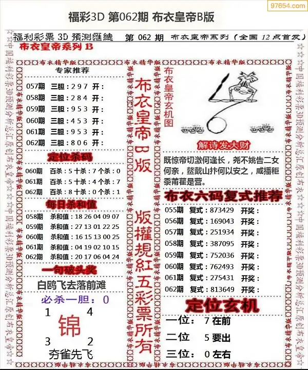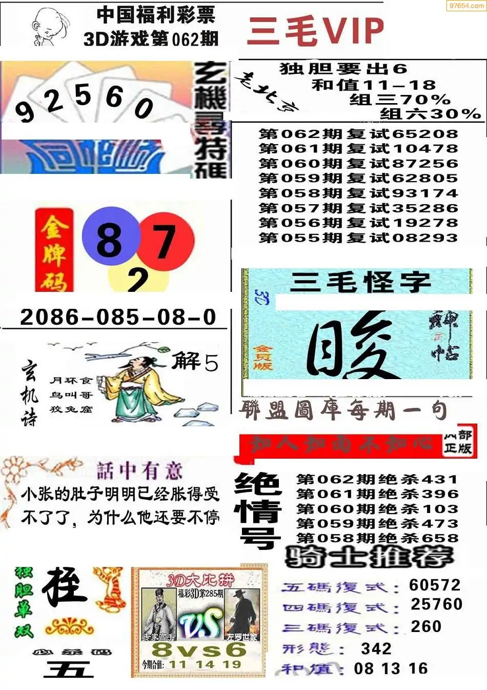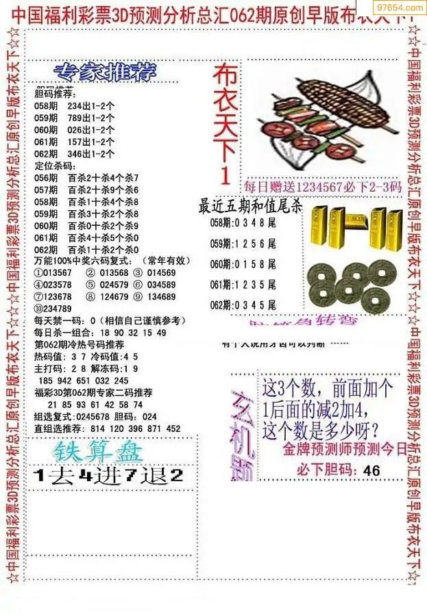 (8)26年062期今日3d各类彩报汇总