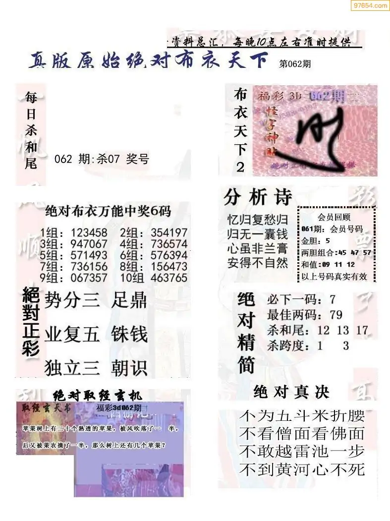 (2)26年062期本期3d图迷汇总_福彩3D图谜总汇图