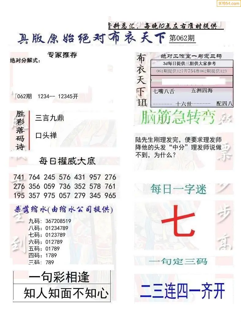 (1)26年062期今日3d图谜总汇