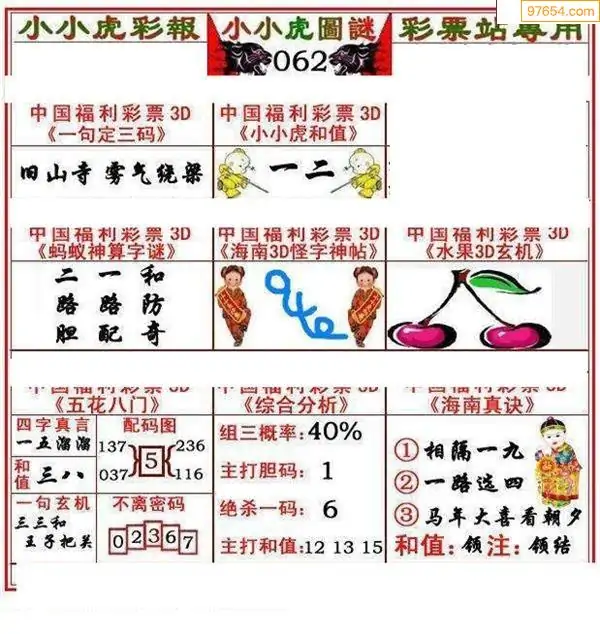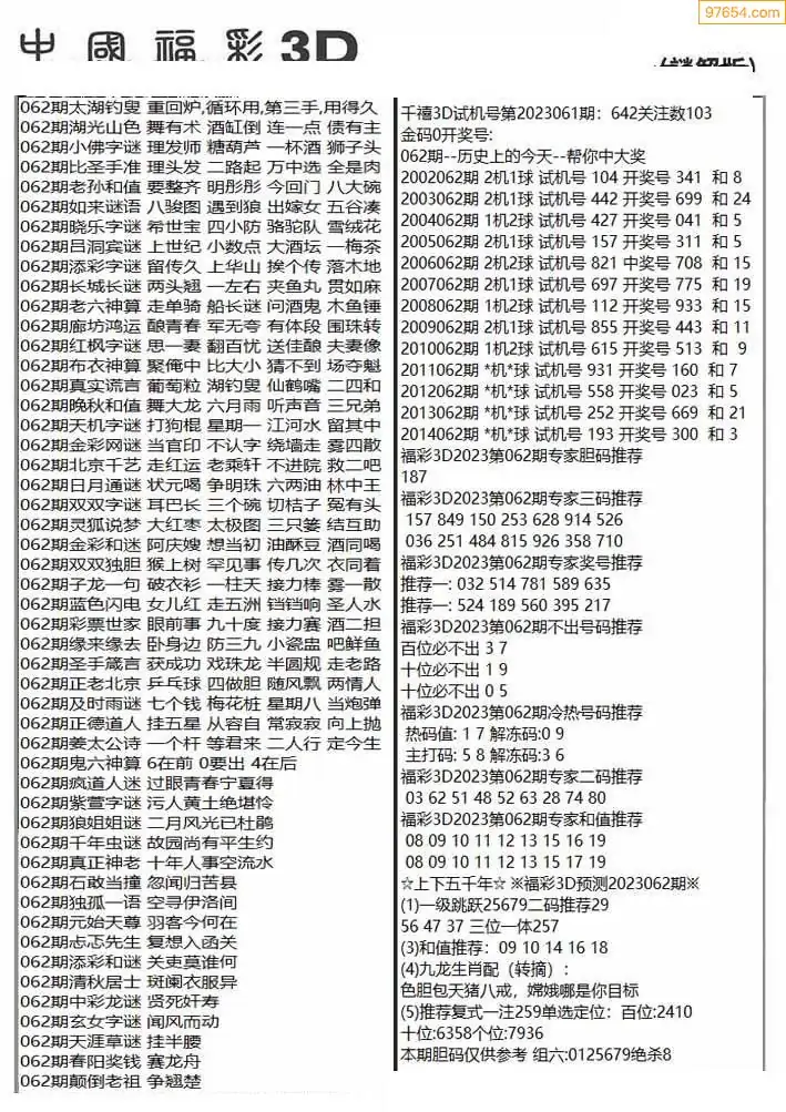 (3)2026062期3D预测总汇全图_福彩3d图谜字谜总汇