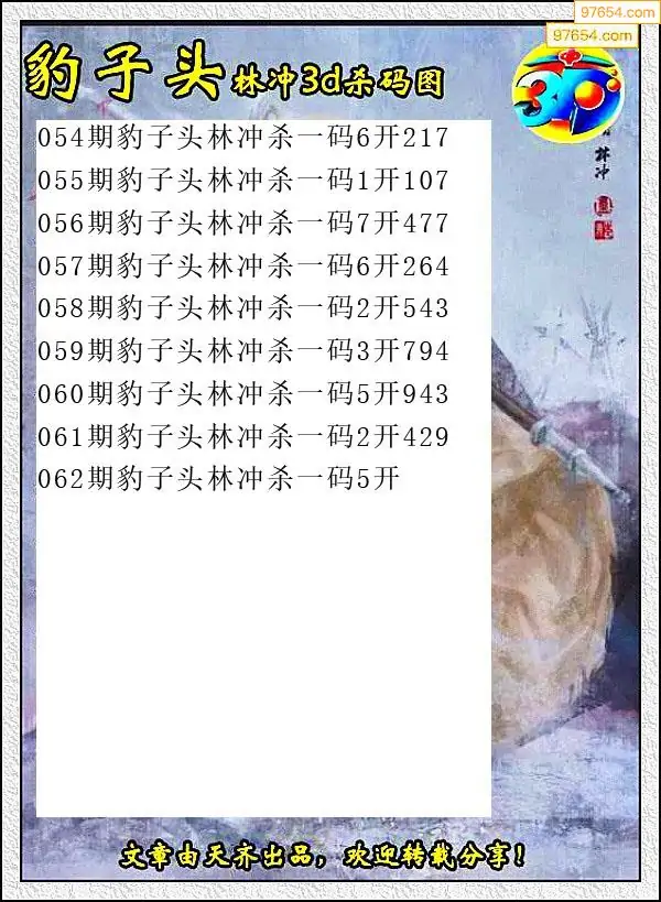 062期97654本站收集杀码出号预测