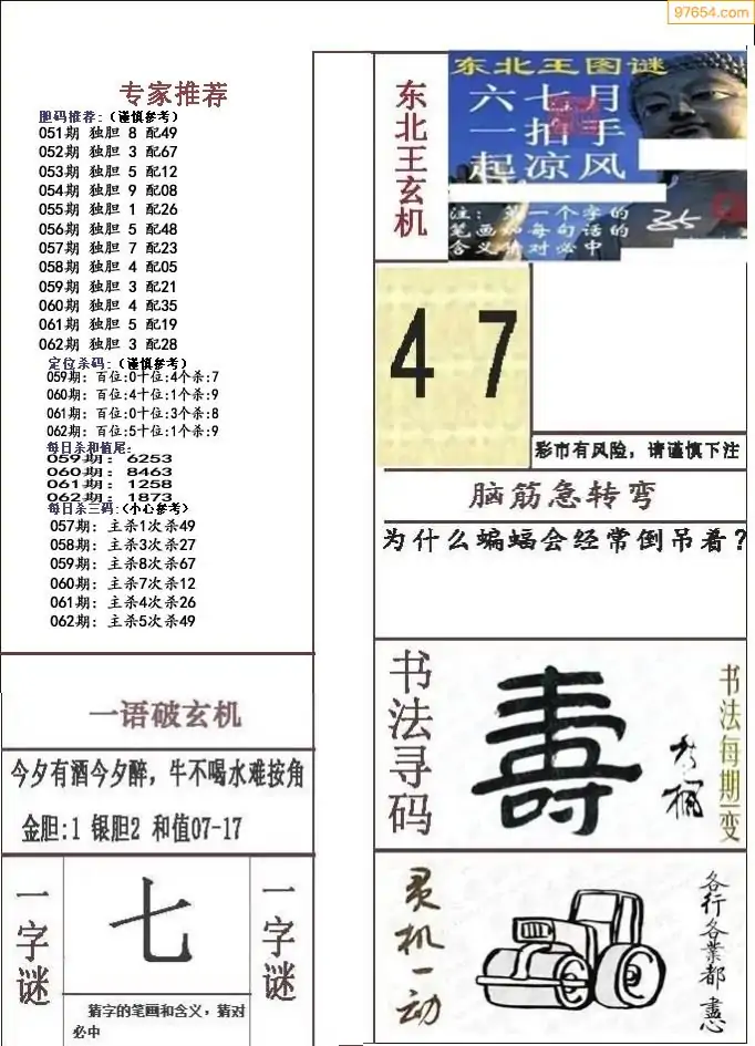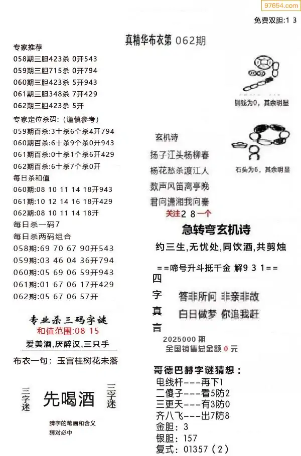 062期真版布衣神算专家推荐