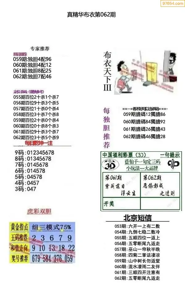 福彩062期3d真精华布衣+布衣早报(转载)