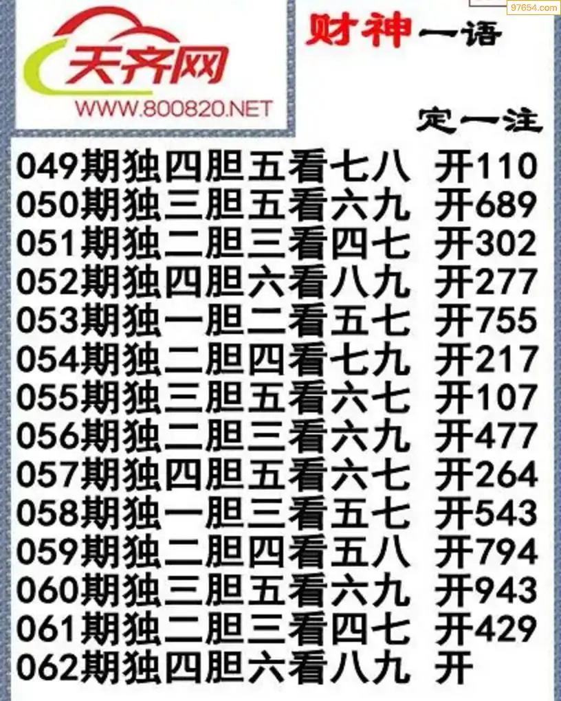 福彩3d26年062期字谜传说一句定三码