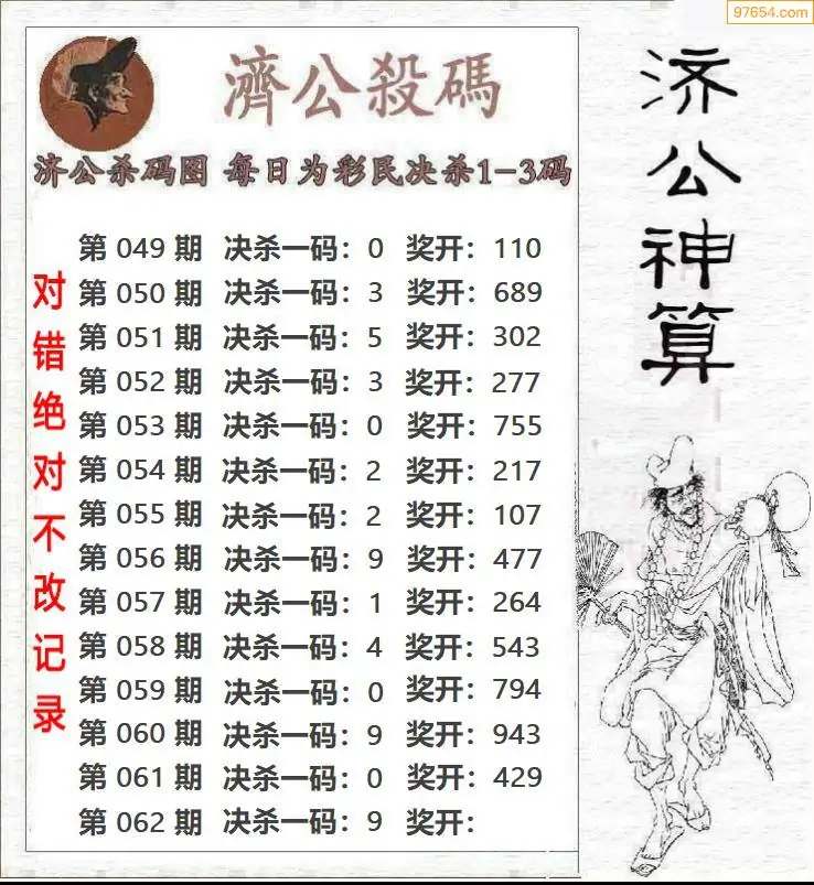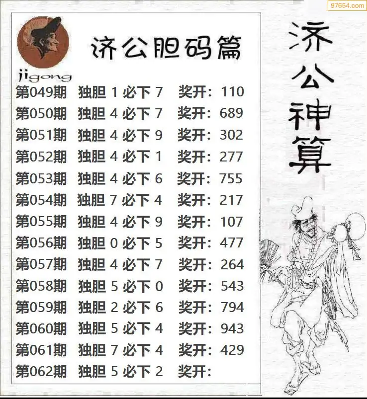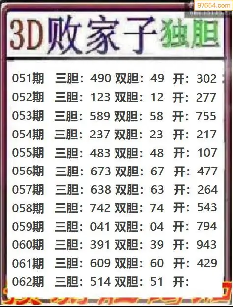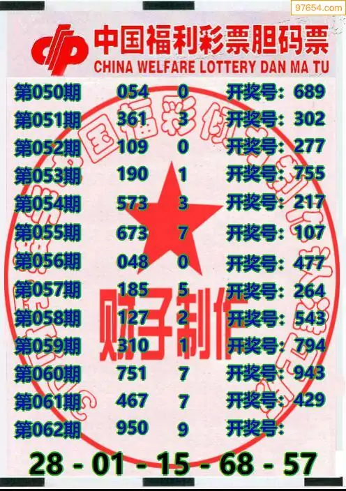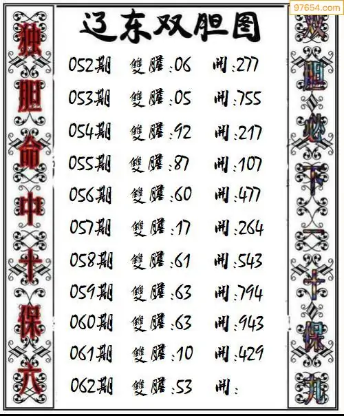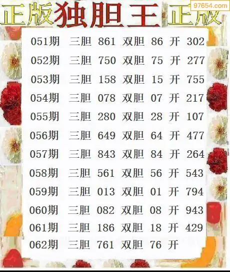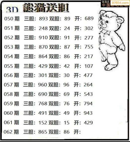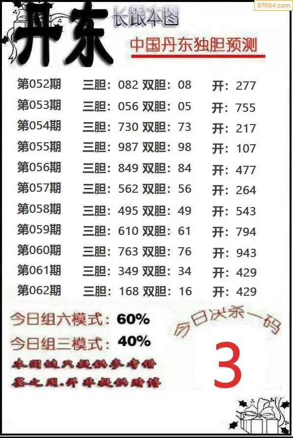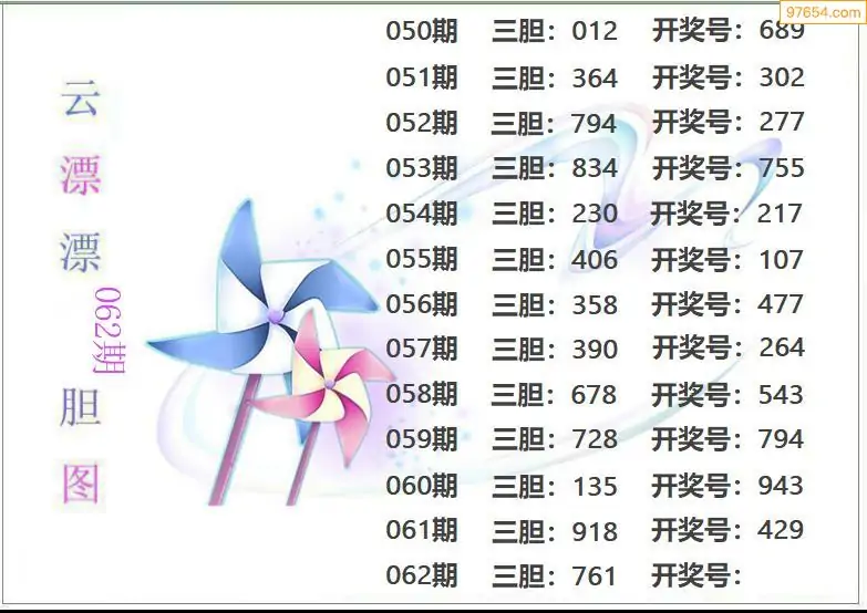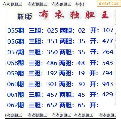 062期97654本站收集胆码出号预测