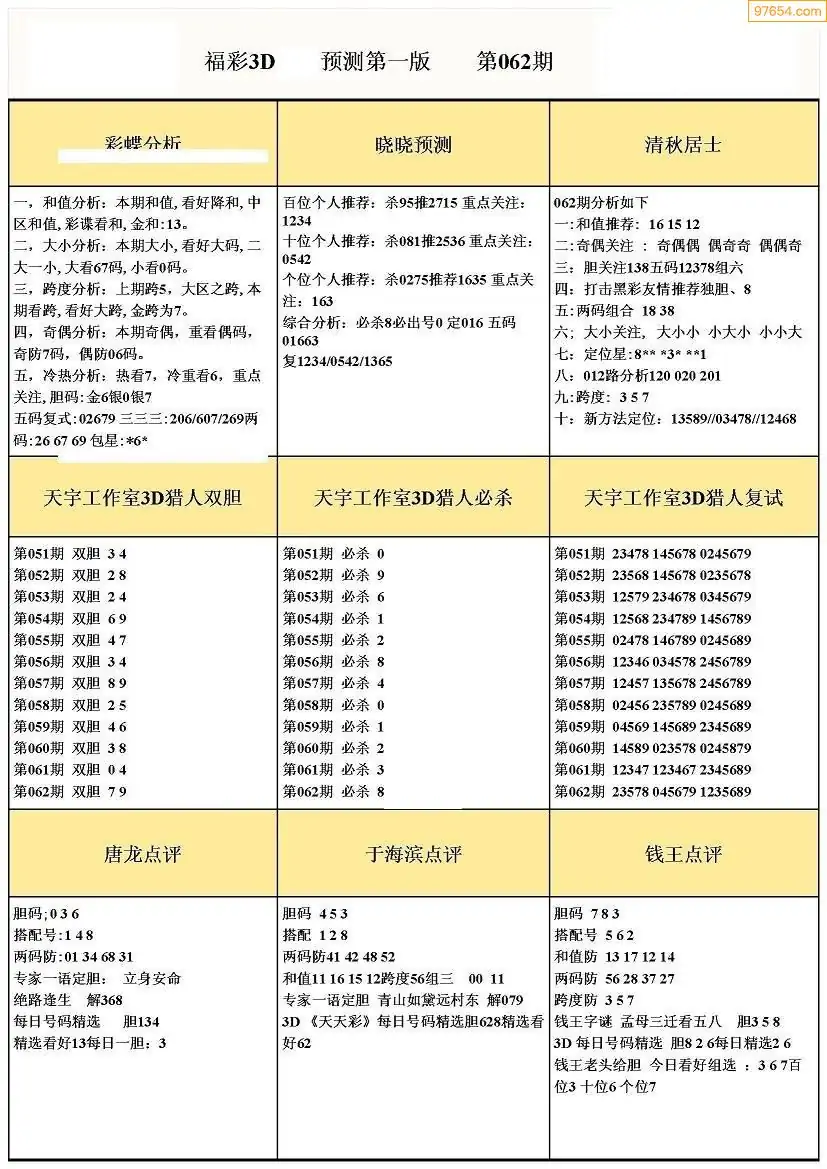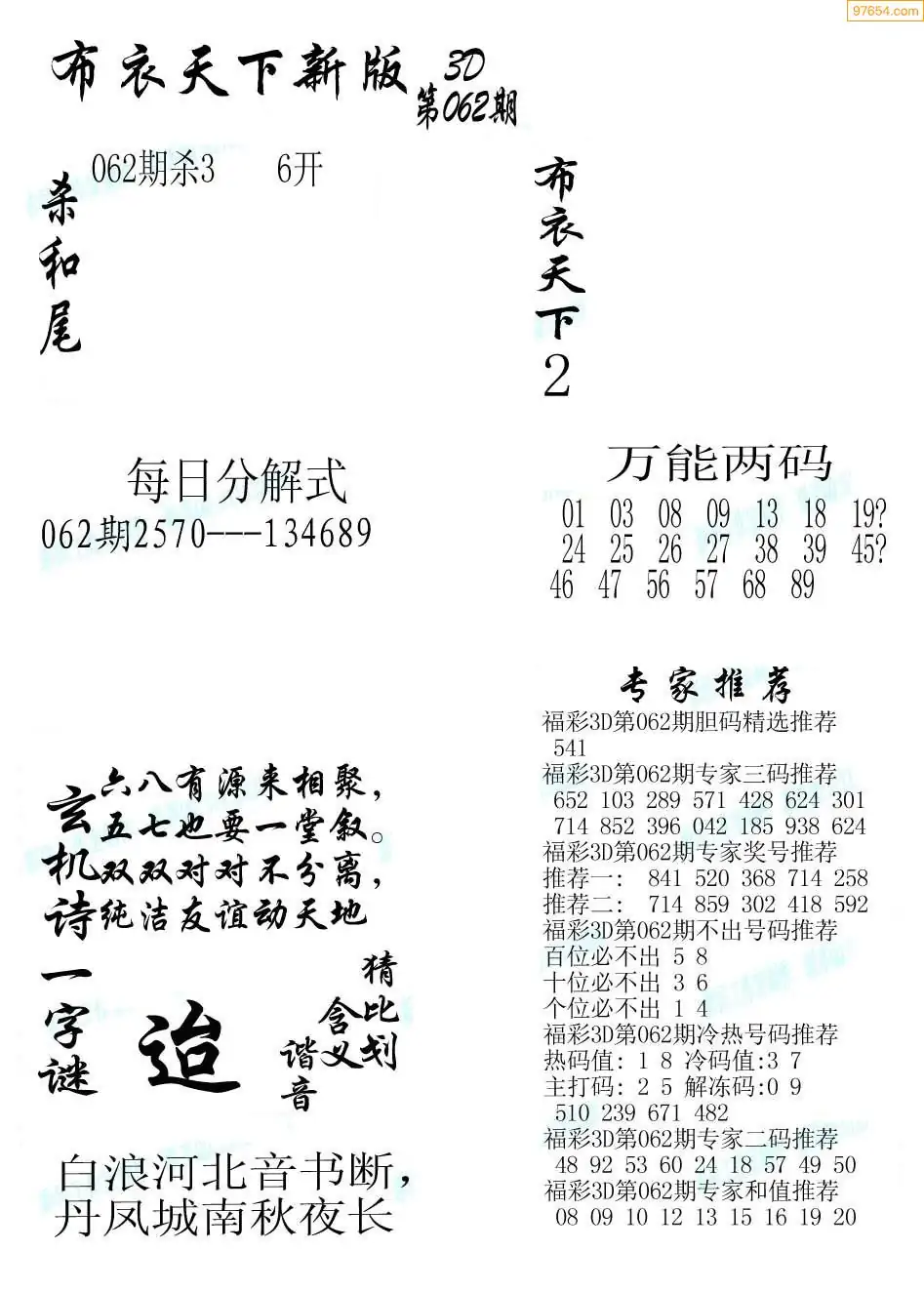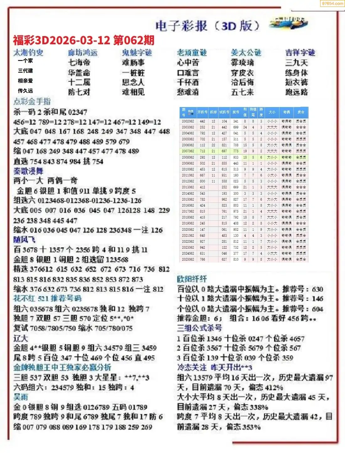 (2)26年062期本期3d图迷汇总_福彩3D图谜总汇图