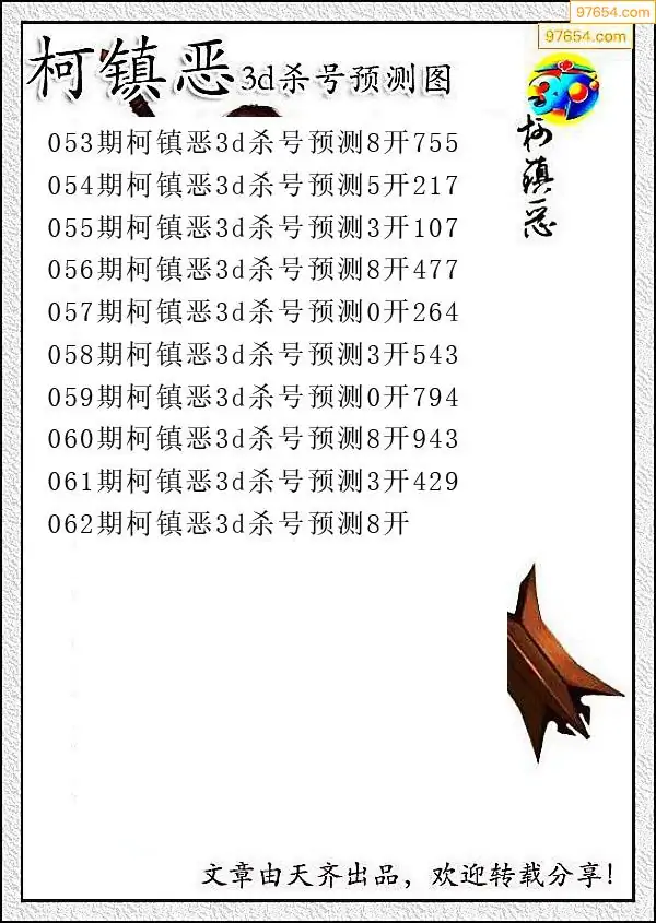 (8)26年061期今日3d各类彩报汇总