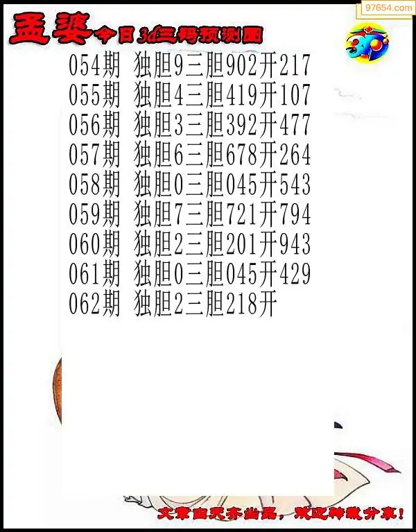 (8)26年062期今日3d各类彩报汇总
