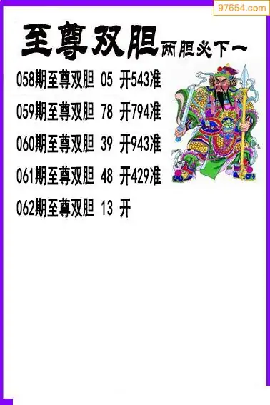 062期97654本站收集胆码出号预测