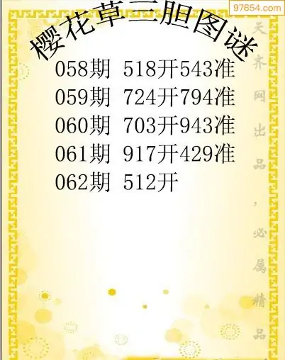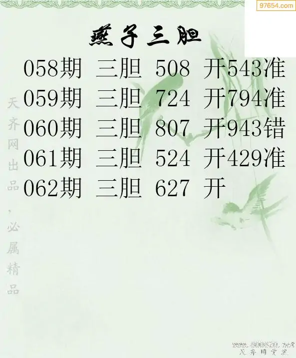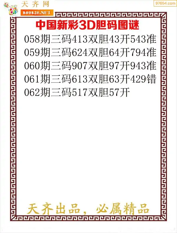 062期97654本站收集胆码出号预测