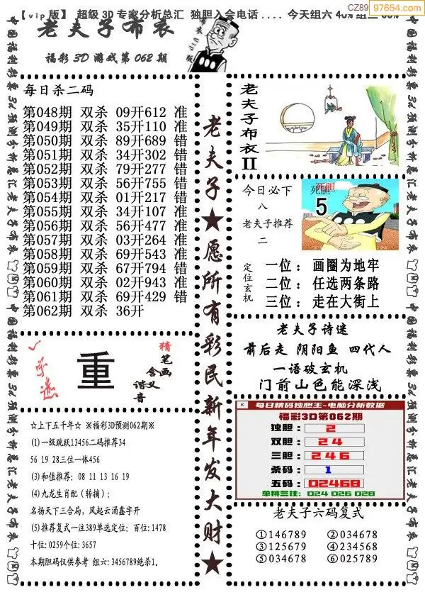 26年062期3d选号彩报图谜画谜