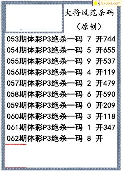 26年062期大将风范p3杀码体彩图谜