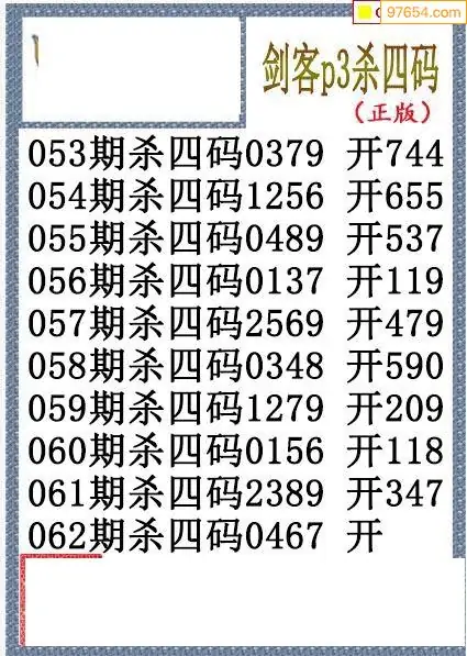 26年062期排三剑客杀码图谜