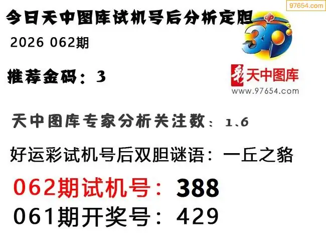 26年062期天中图库专家3D试机号后分析汇总