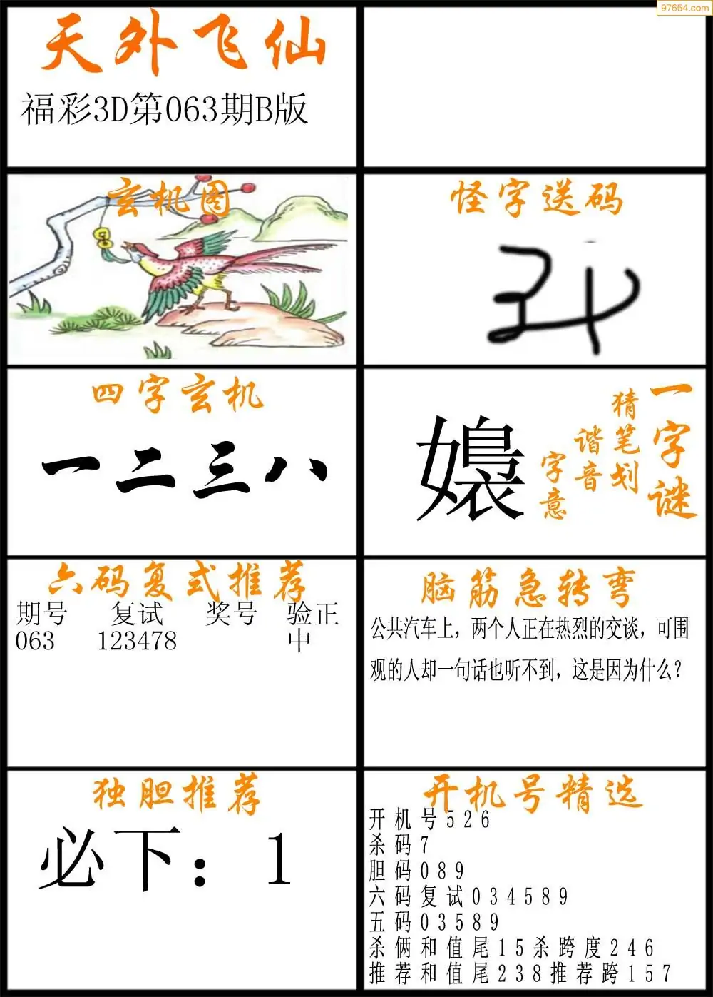 063期福彩3d天外飞仙B版