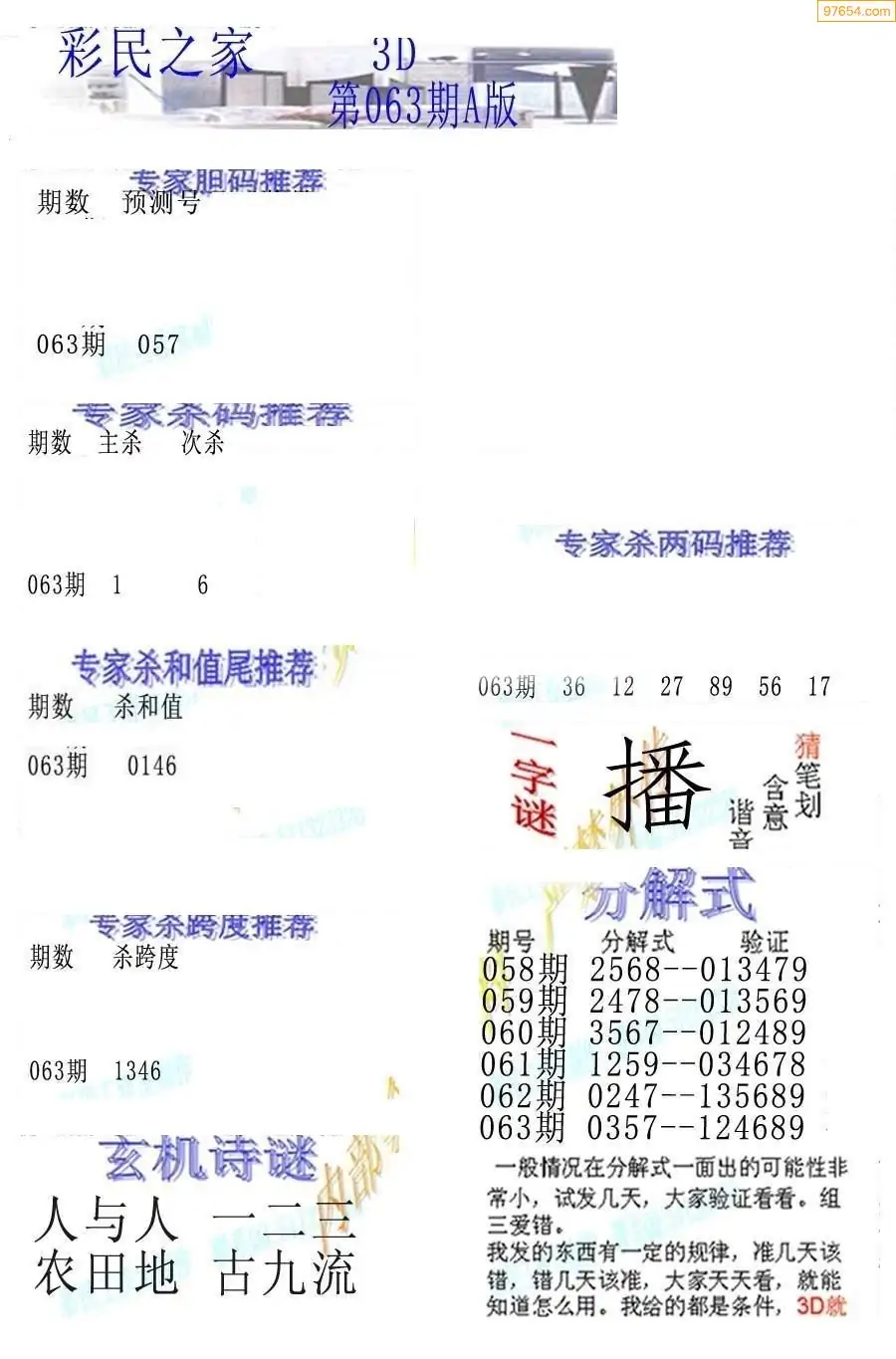 26063期3D彩民各类资料A版