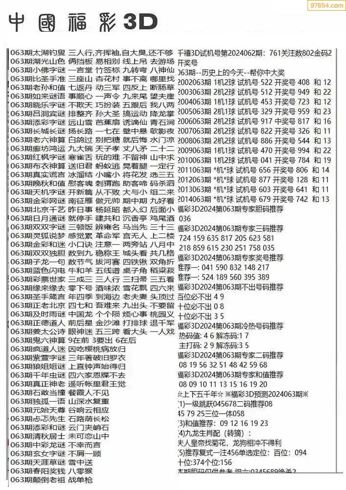 福彩3D063期天牛彩吧套图整合总汇