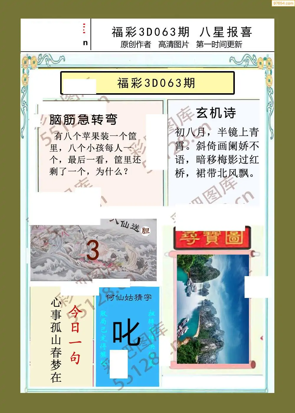 063期福彩天机壁怪字图