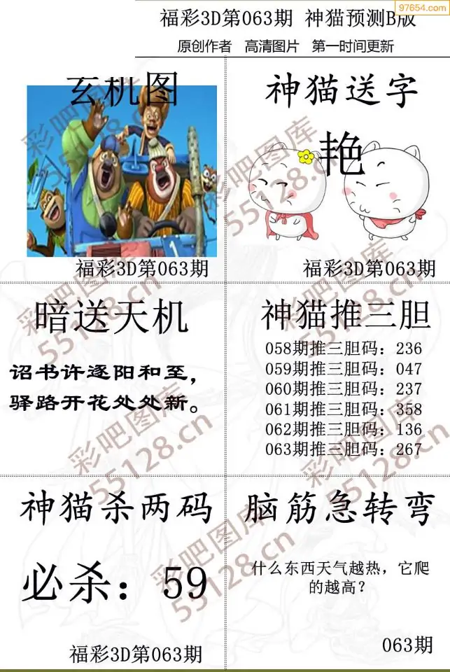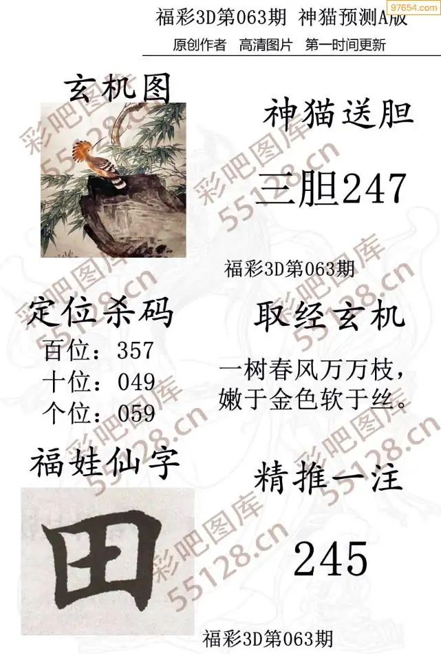 福彩3D063期天牛彩吧套图整合总汇