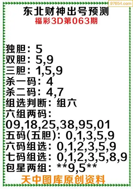 3d原创063期东北财神预测