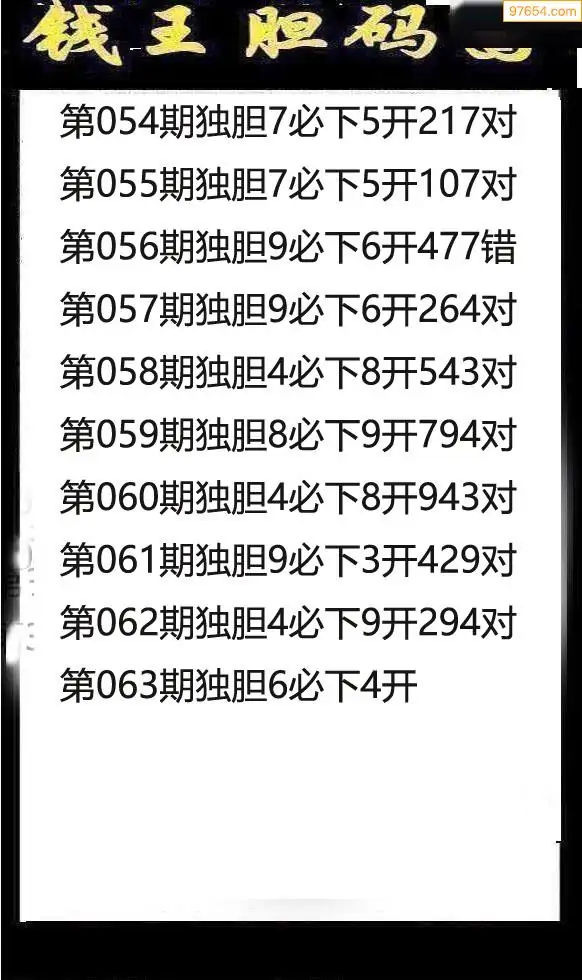063期97654本站收集胆码出号预测