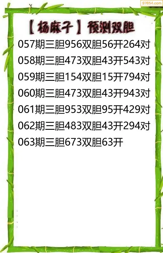 063期97654本站收集胆码出号预测