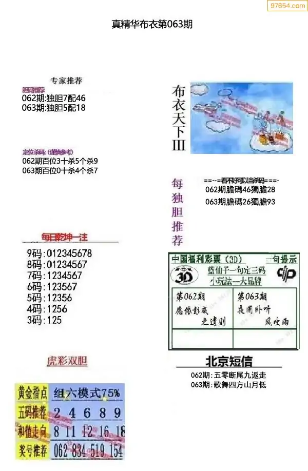 福彩063期3d真精华布衣+布衣早报(转载)