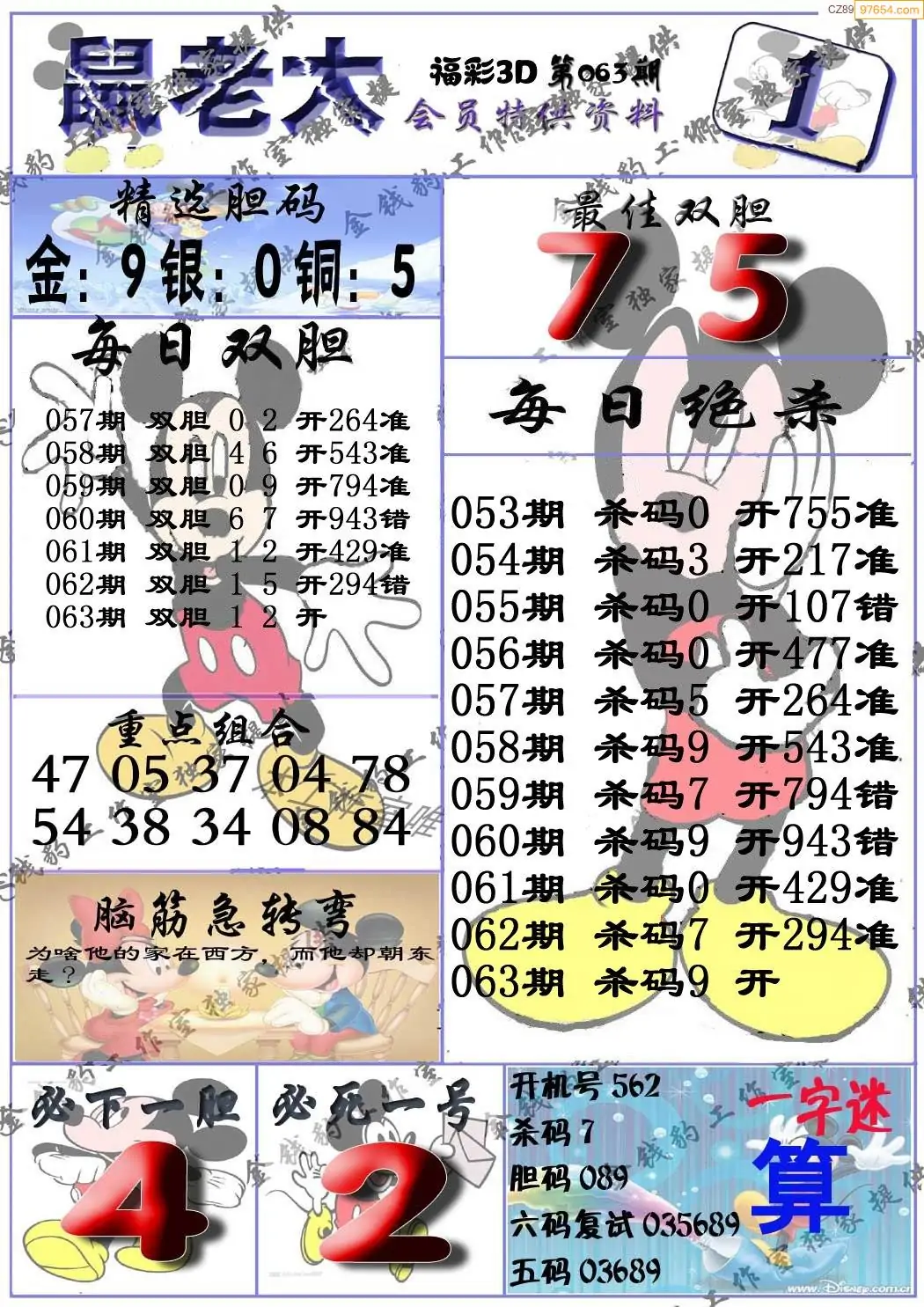 2026年063期福彩3d真鼠老大