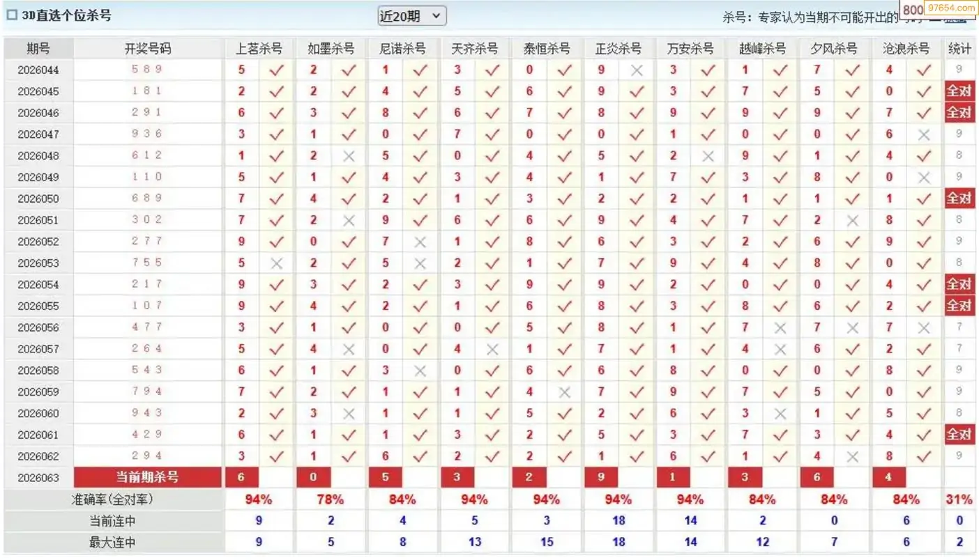 福彩3D26年063期杨树林分析杀码 6连中