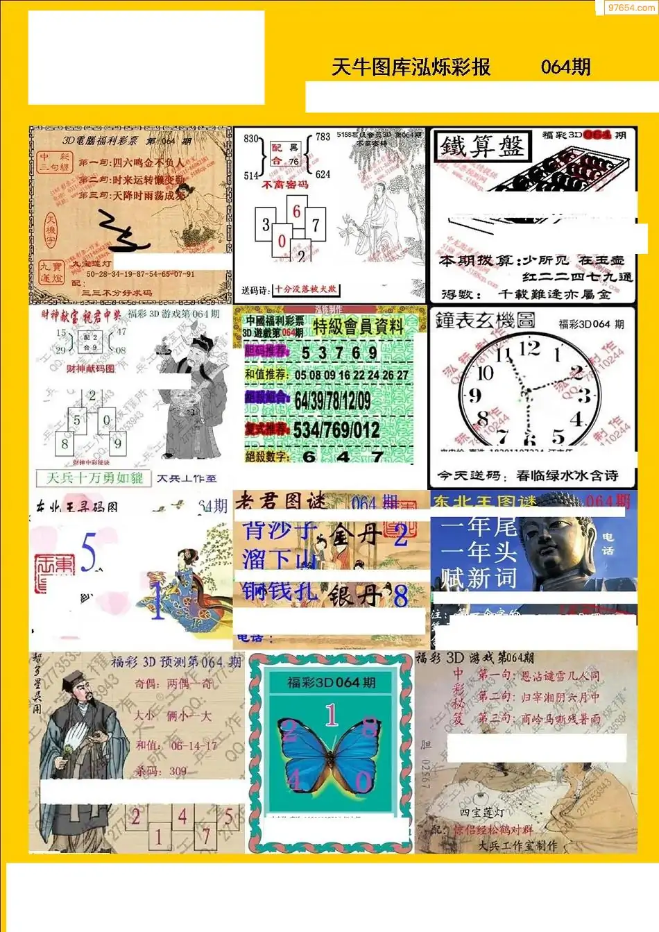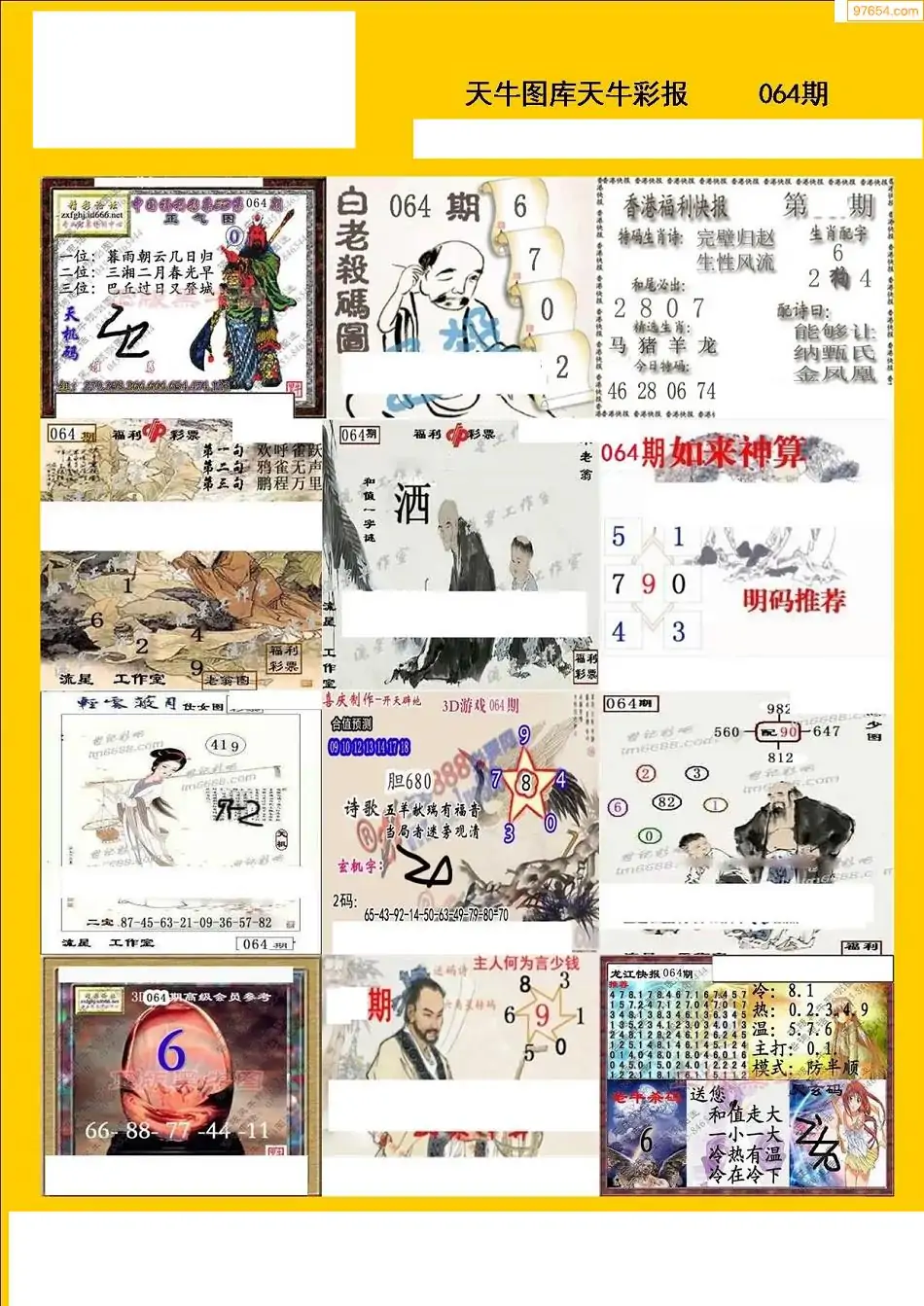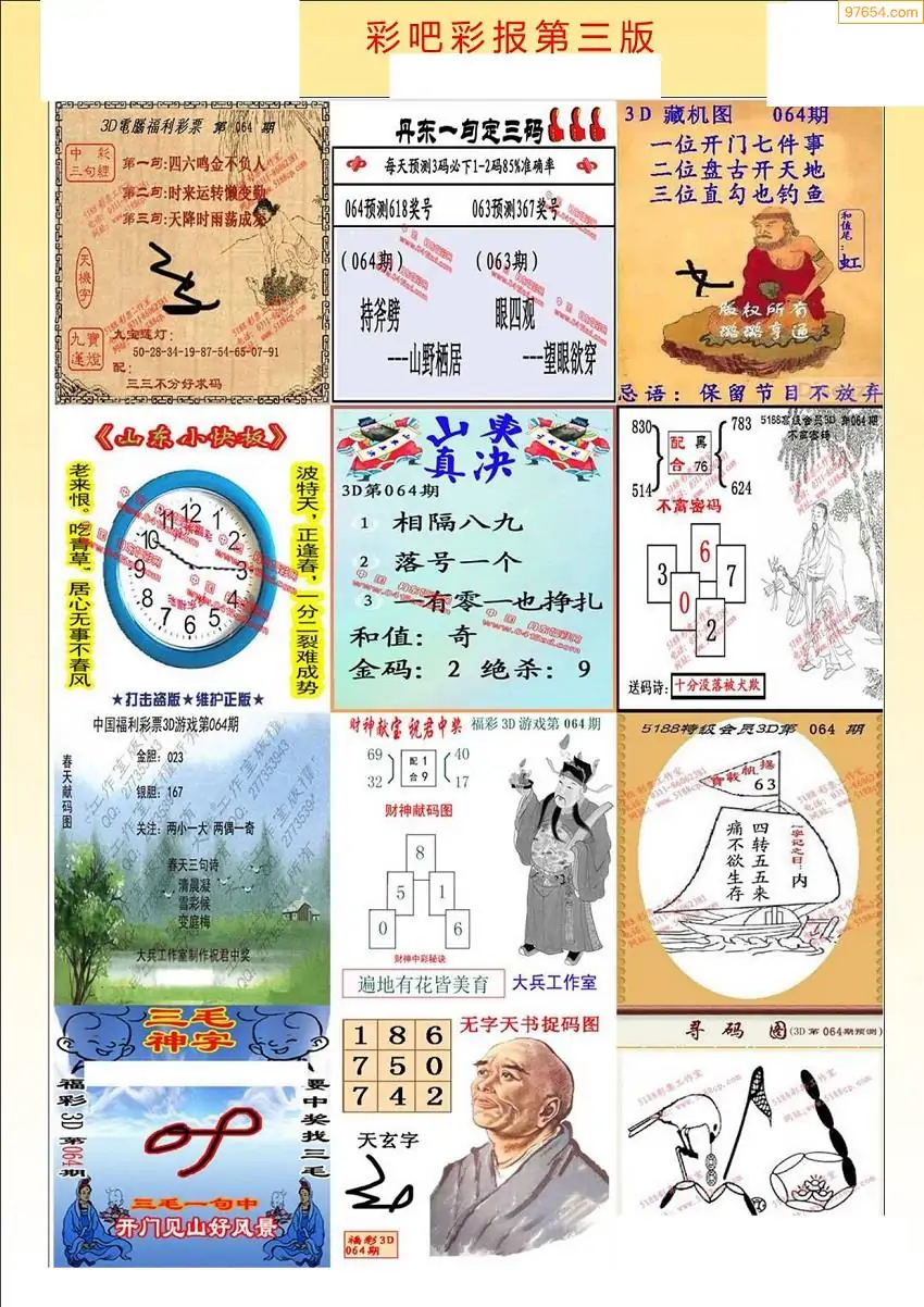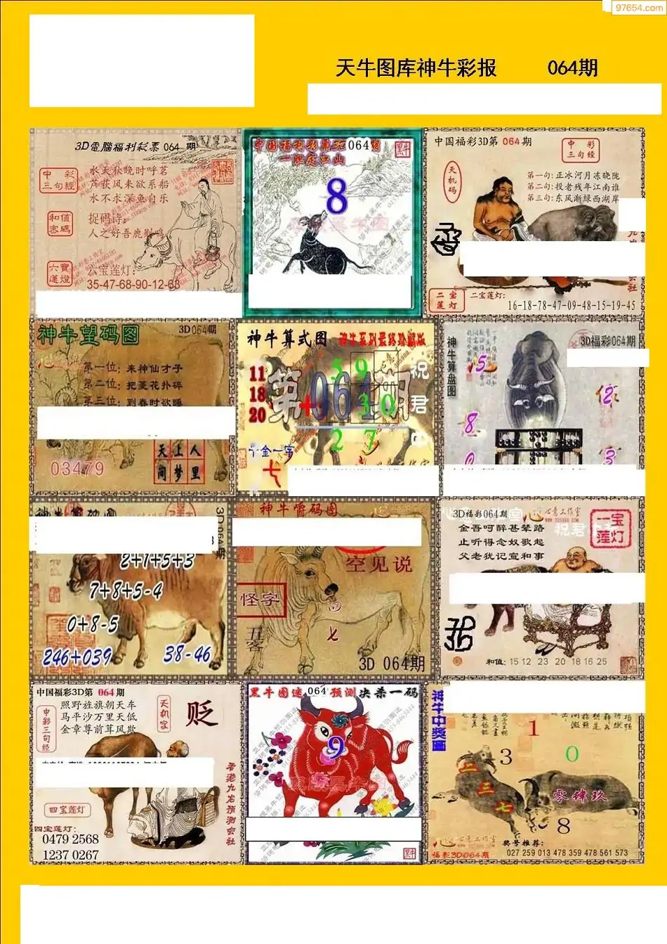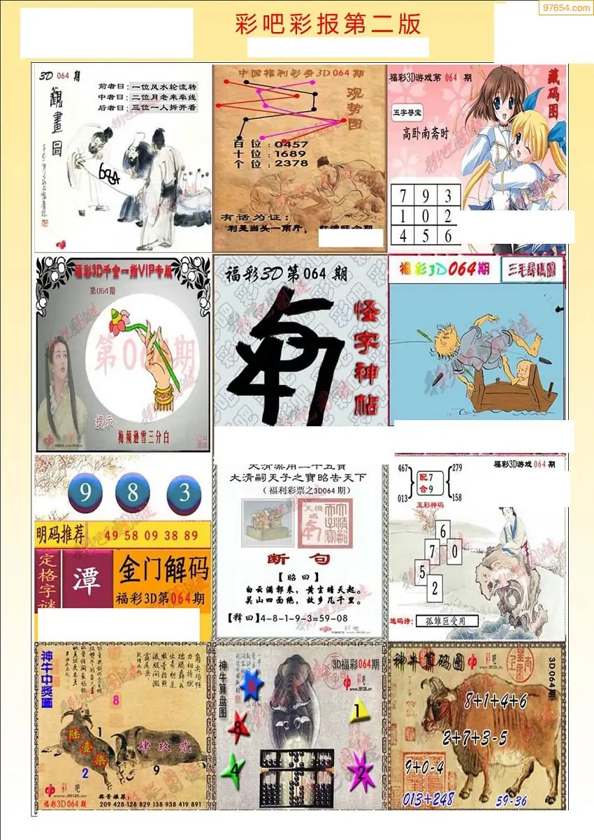 福彩3D064期天牛彩吧套图整合总汇