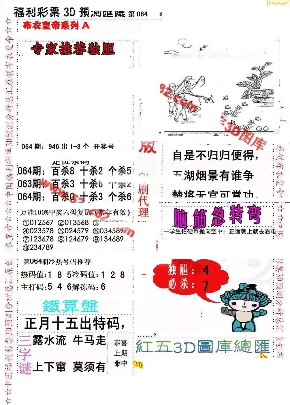 064期3D彩吧图库精华布衣图123456分享