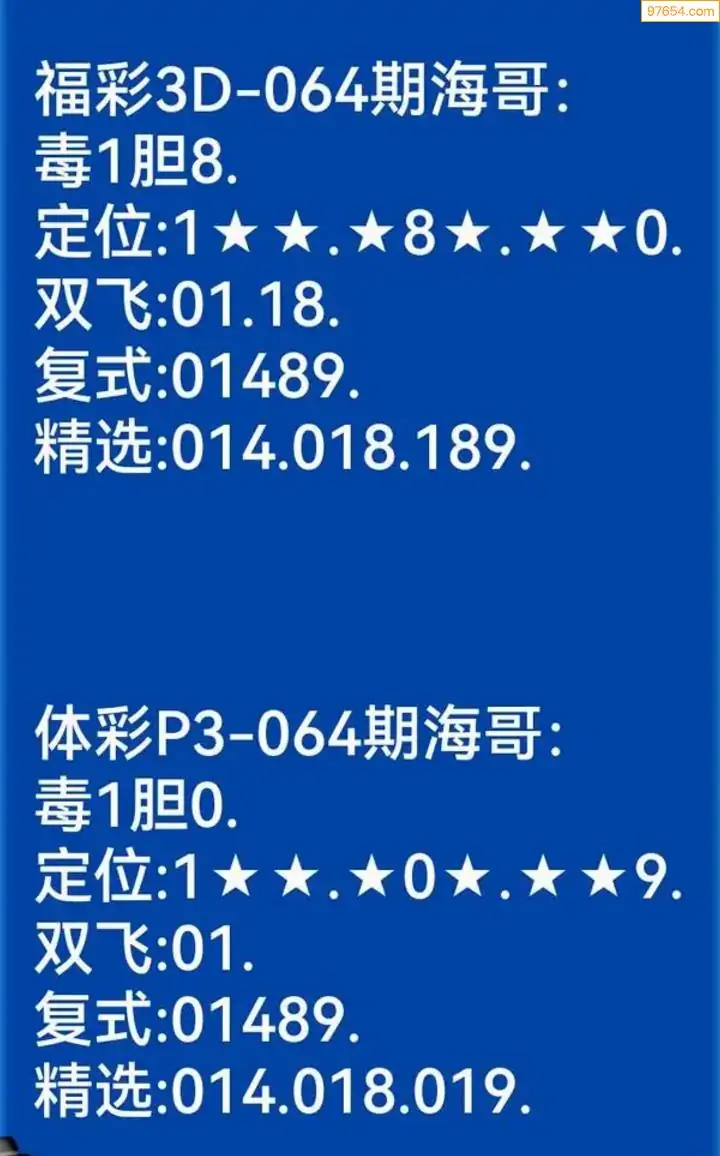 海哥福彩064期3d今日双胆