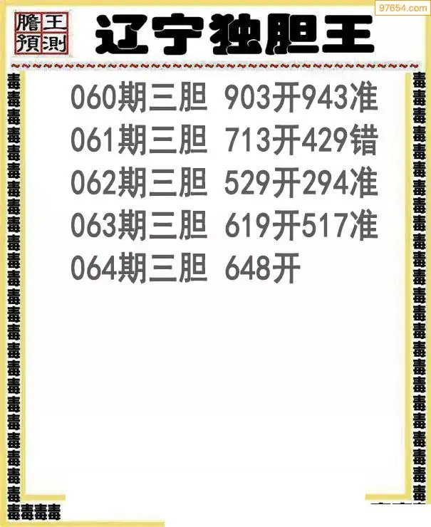 064期97654本站收集胆码出号预测