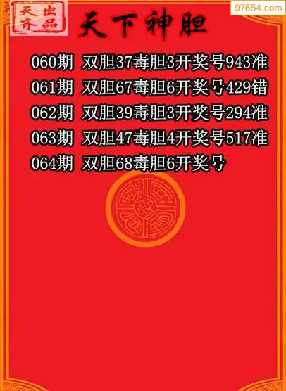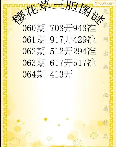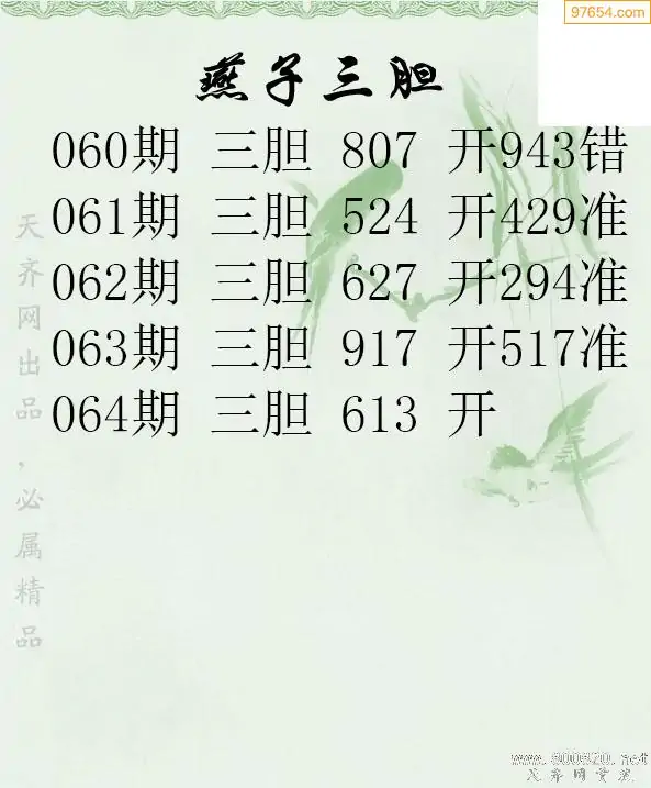 064期97654本站收集胆码出号预测