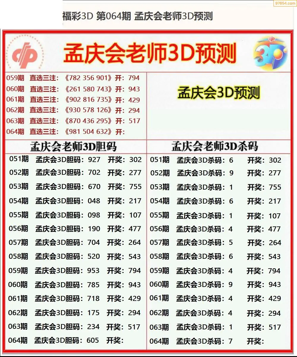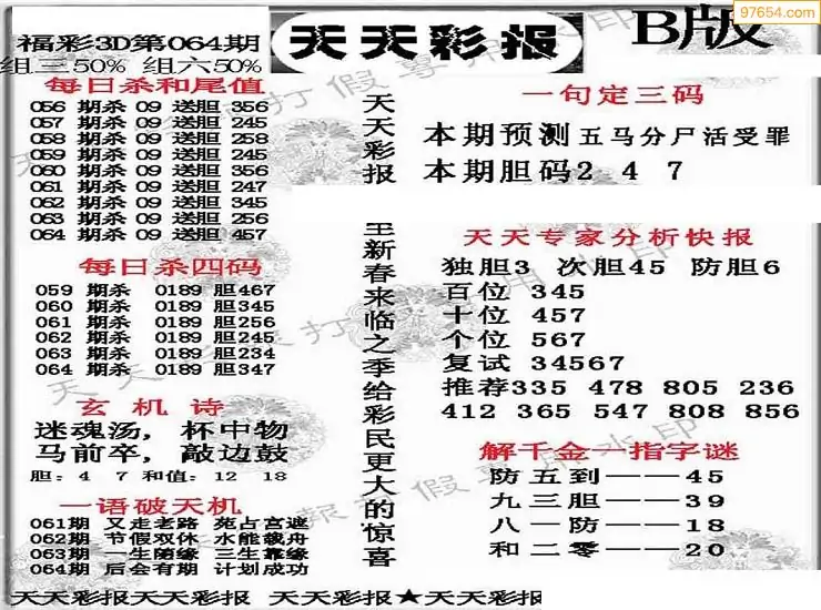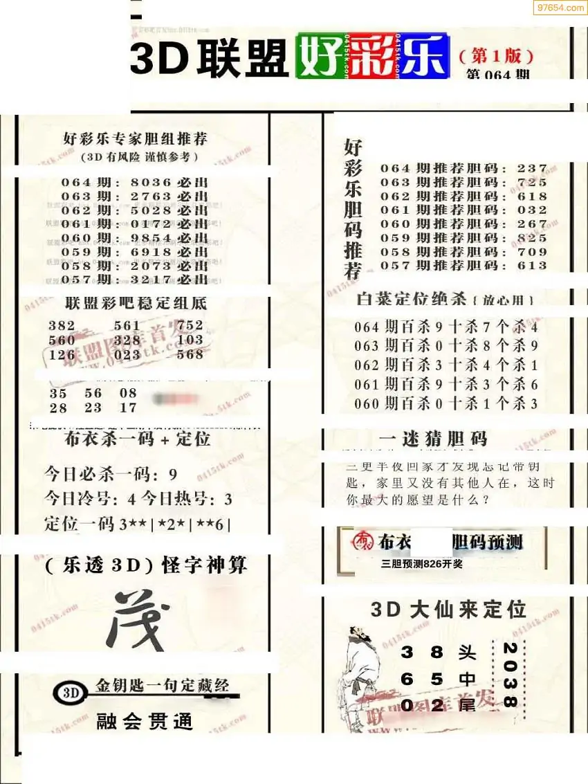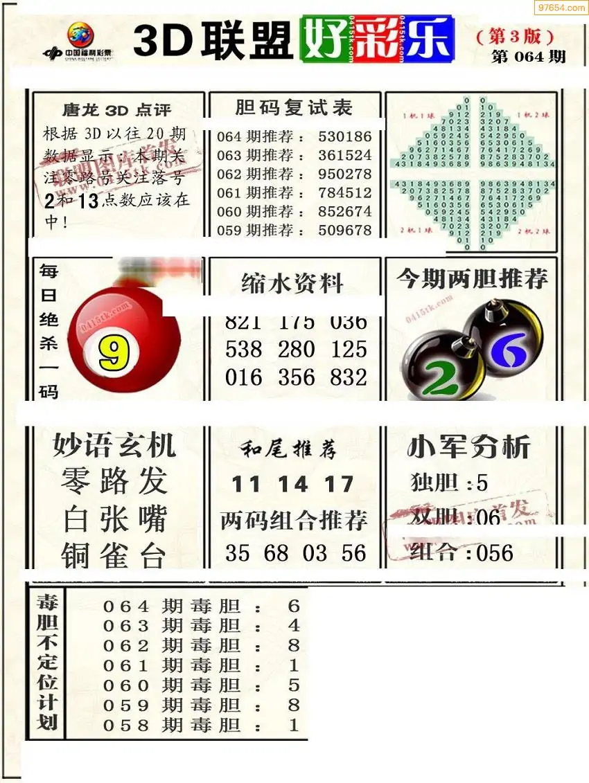 (8)26年064期今日3d各类彩报汇总