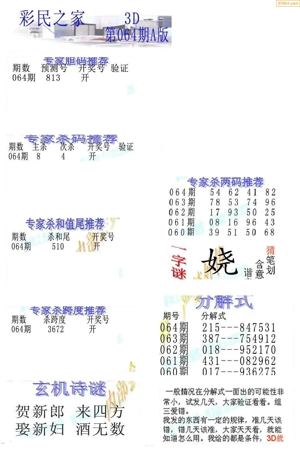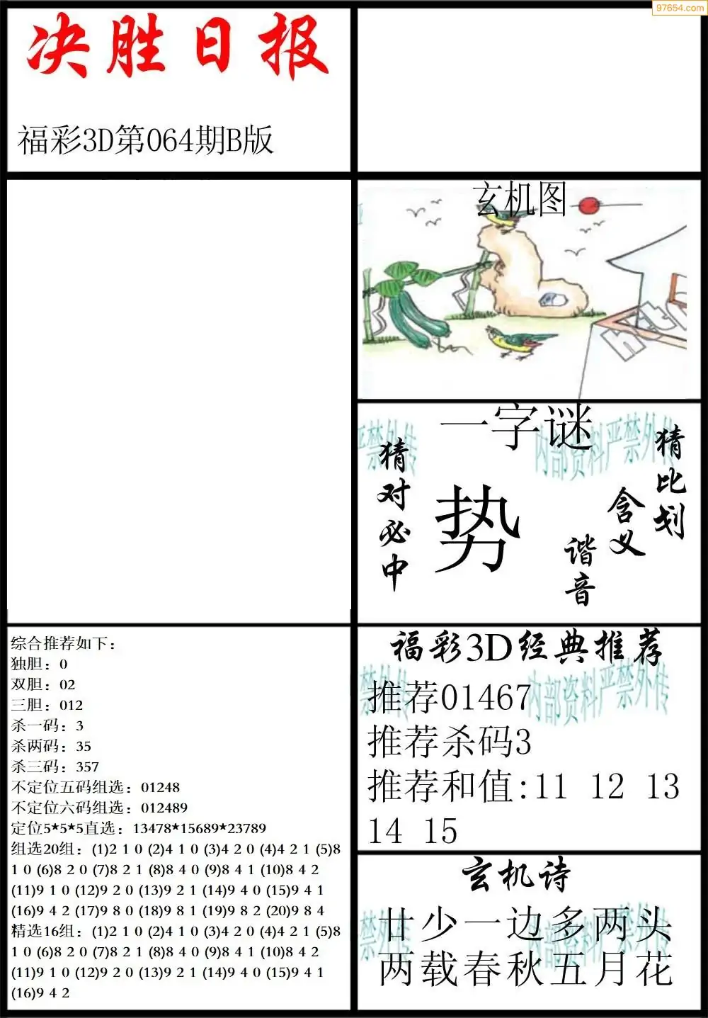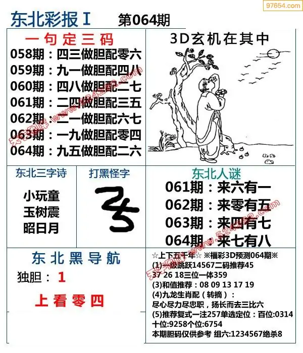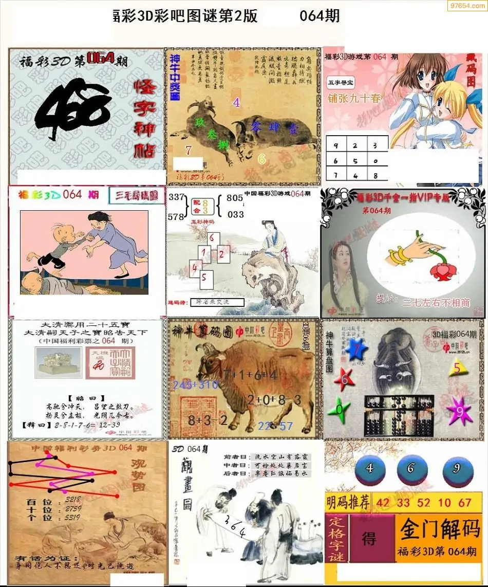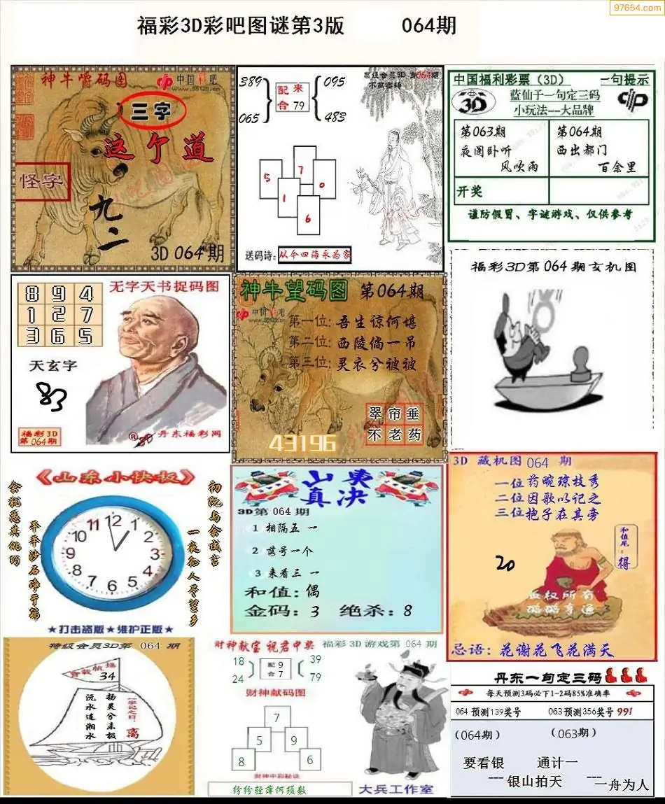 (3)2026064期3D预测总汇全图_福彩3d图谜字谜总汇