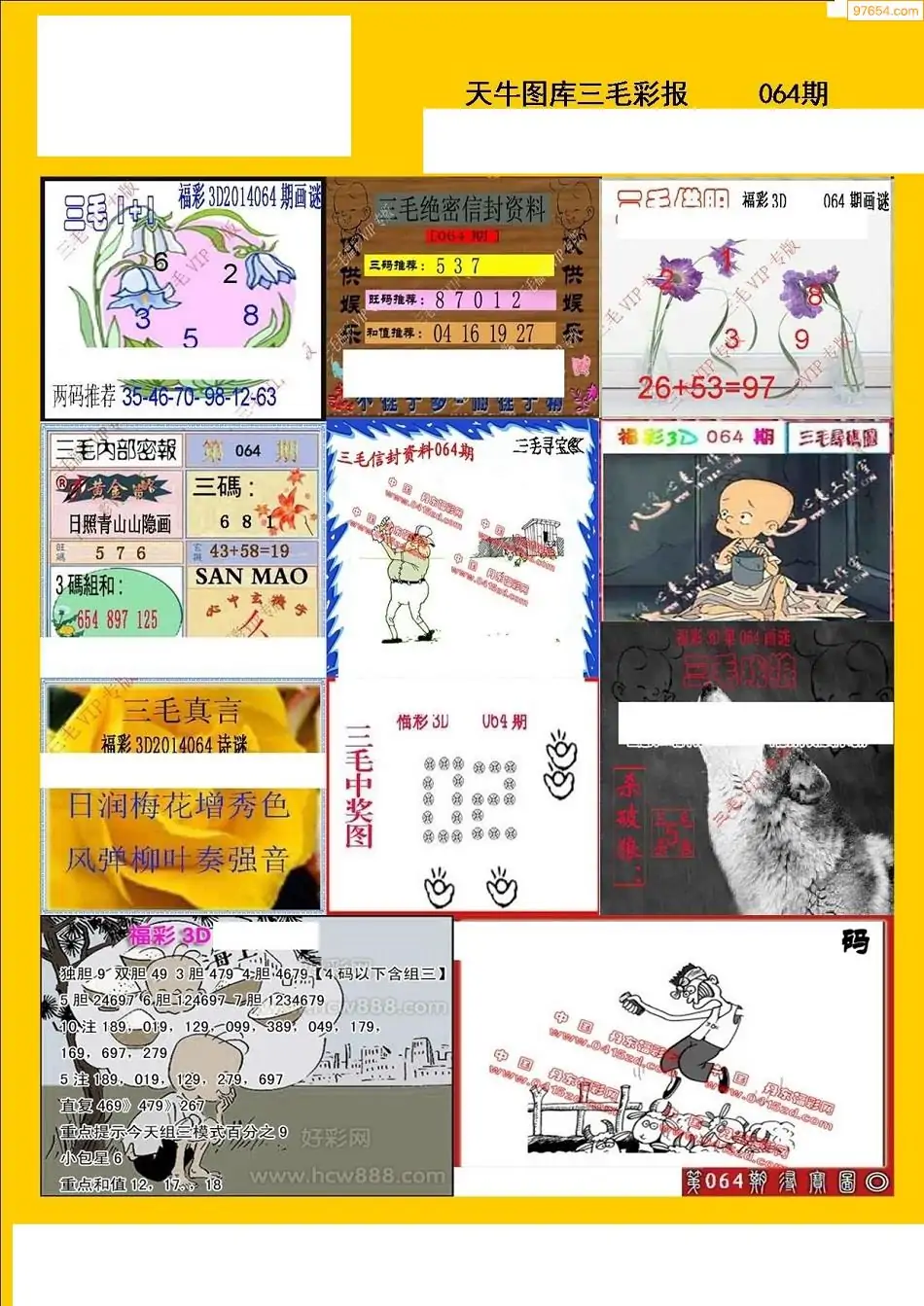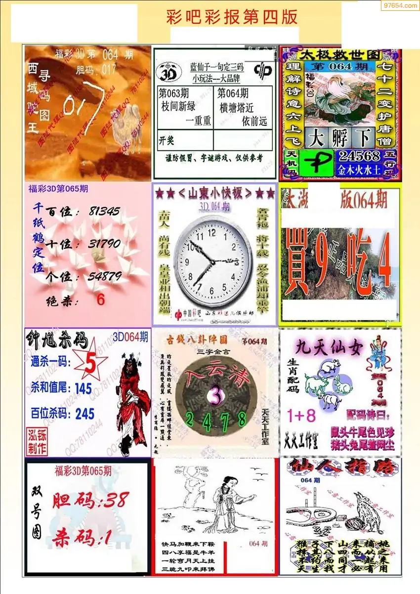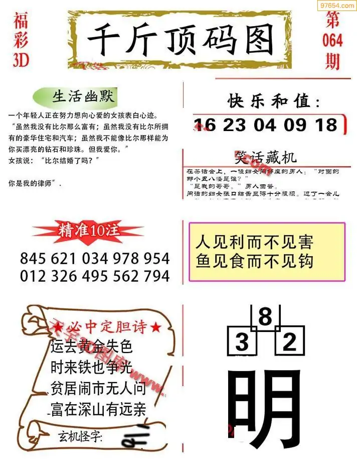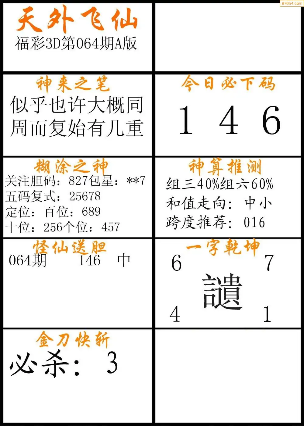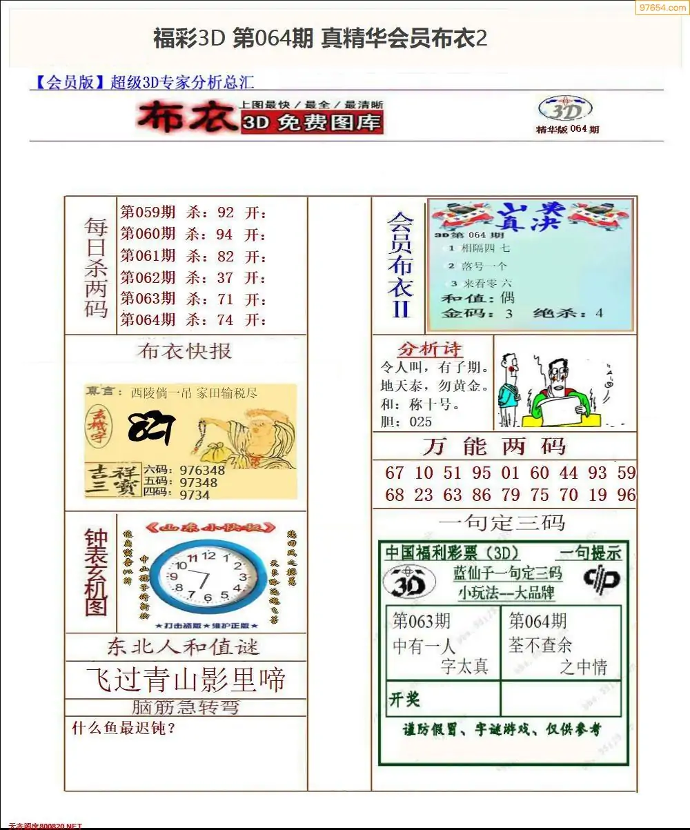 (3)2026064期3D预测总汇全图_福彩3d图谜字谜总汇