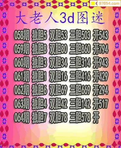 2026064期彩彩网3d原创图迷搜集(天中整理)