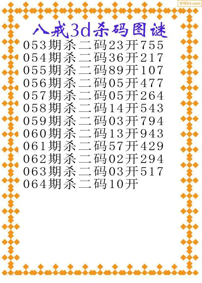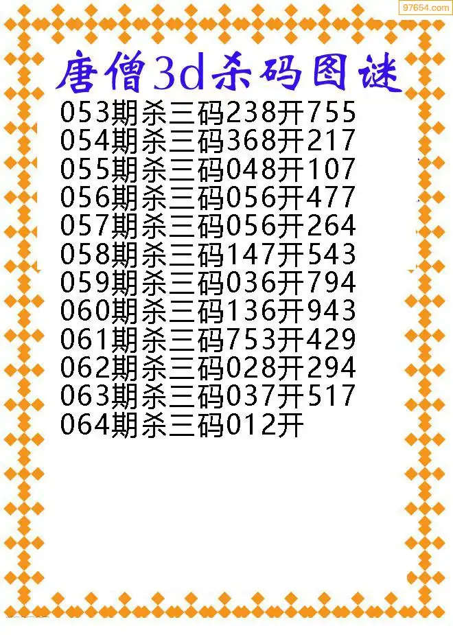 (3)2026064期3D预测总汇全图_福彩3d图谜字谜总汇