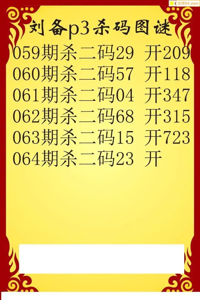 26年064期刘备p3杀码图谜