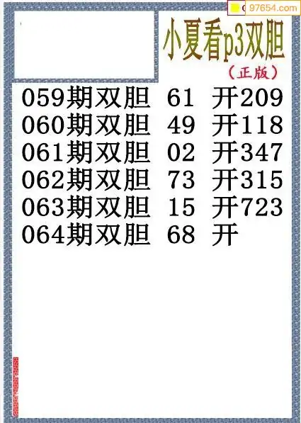 26064期小夏双胆体彩P3图谜