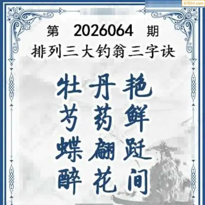 26年体彩p3第064期大钓翁三字诀