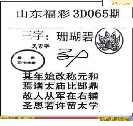(3)2026065期3D预测总汇全图_福彩3d图谜字谜总汇